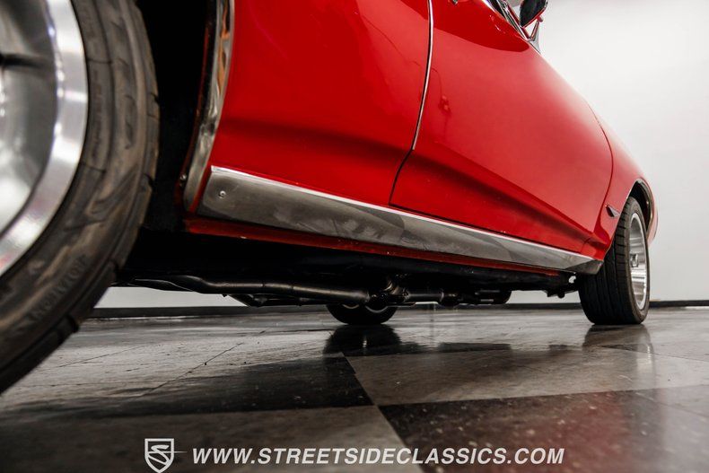 A rebuilt 400 cubic inch V8 resides under the hood, with less than 500 miles since the overhaul. Topped with Edelbrock aluminum heads, carburetor, and intake manifold, this powerplant delivers serious thrust. The TH400 3-speed automatic transmission features a shift kit for firm, positive gear changes. Long tube headers feed into a dual exhaust system with electric cutouts controlled by a dash switch. The UMI performance suspension with Bilstein shocks, along with power steering and four-wheel power disc brakes, help put all that power to good use. The 10-bolt rear end sports 3.73 gears with a posi-traction differential.