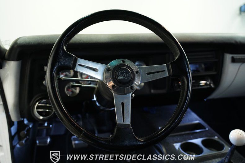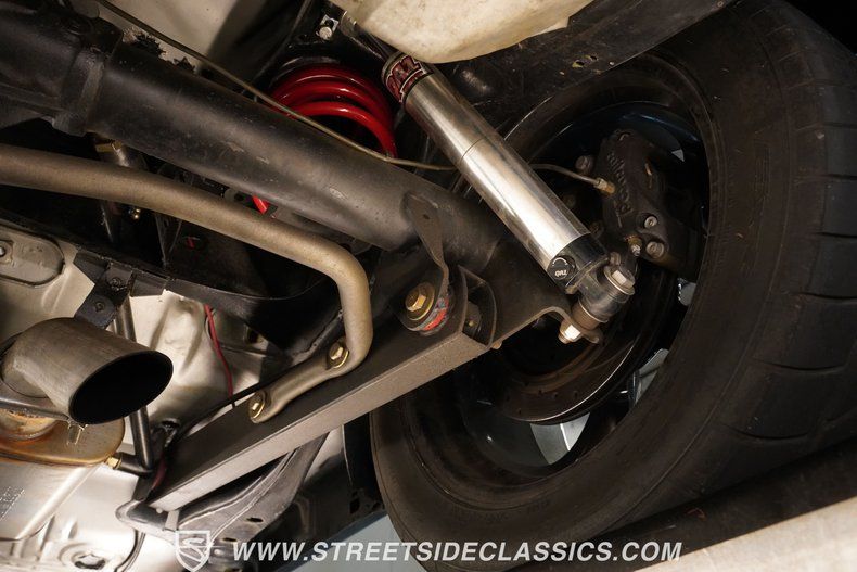Black interior keeps everything focused on the task at hand. Racing bucket seats covered in vinyl with fake carbon fiber patterns lock you in place, while the custom center transmission tunnel replaces any unnecessary frills. That Hurst shifter sits right where it should, ready to work the Tremec manual transmission through its gears. AM/FM CD player with AUX, USB, and Bluetooth handles the soundtrack, while power steering, tilt wheel, and front seatbelts cover the essentials. The 12V system runs from a trunk-mounted battery with shut-off switch, keeping weight distribution where it counts.