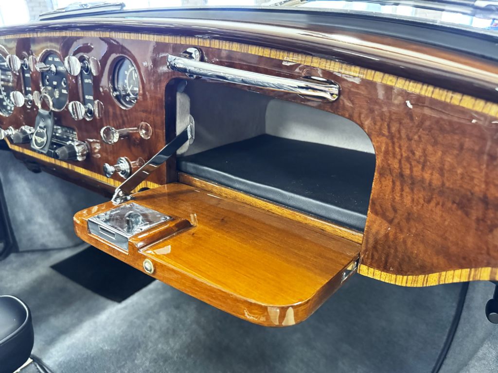 BC25LDJfeatures thevenerable 4.9-liter inline six-cylinder engine with four-speed automatic transmission. The original engine and all systems and components were meticulously rebuilt by Vantage Motorworks during its restoration. The engine compartment and chassis are meticulously detailed and restored to concours quality. This Bentley features the desirable power-assisted steering, electrically adjustable rear lever-arm shock absorbers, and servo-assisted drum brakes.