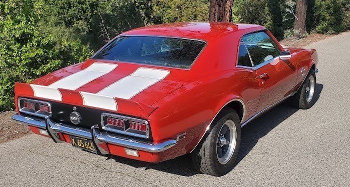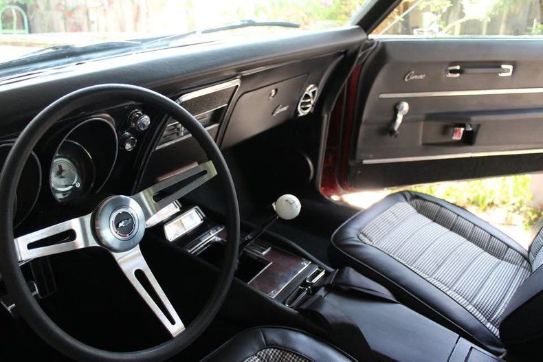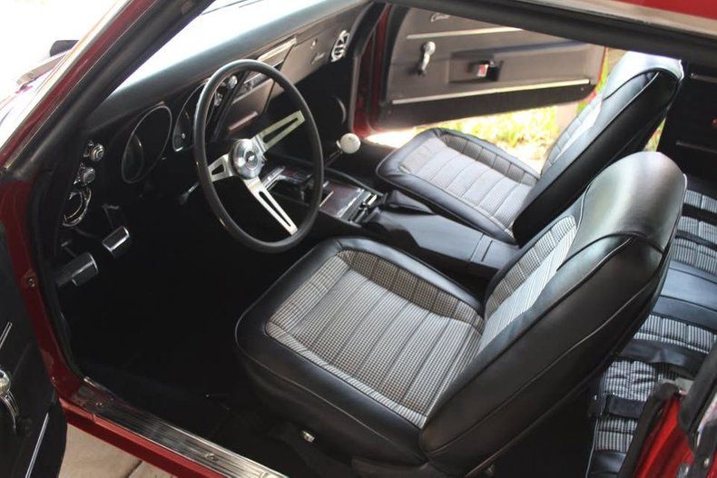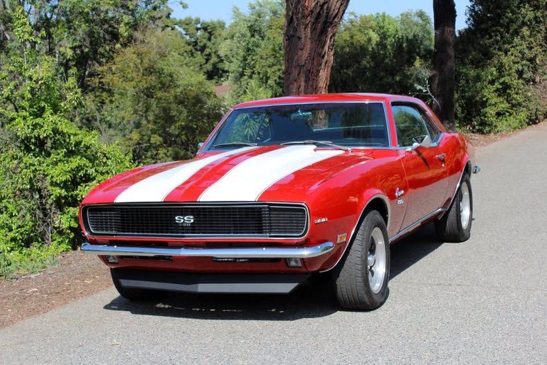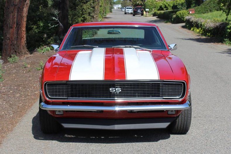 CONDITION This 1968 Camaro RS/SS has undergone a professional frame-off restoration and is presented in outstanding condition inside and out. The Matador Red paint gleams with depth and quality, complemented by excellent body gaps, chrome, and trim fitment. The black and gray deluxe houndstooth interior looks sharp and clean, and all factory gauges-including the rare TIC TOC tachometer-are in place. The rebuilt 396 big block engine delivers powerful and smooth performance, paired with a Muncie 4-speed for a classic muscle car experience. Hidden RS headlights function perfectly with upgraded electric motors. With only 500 miles driven since the restoration, this Van Nuys, California-built Camaro is a superb example that will impress both collectors and first-gen Camaro enthusiasts alike.