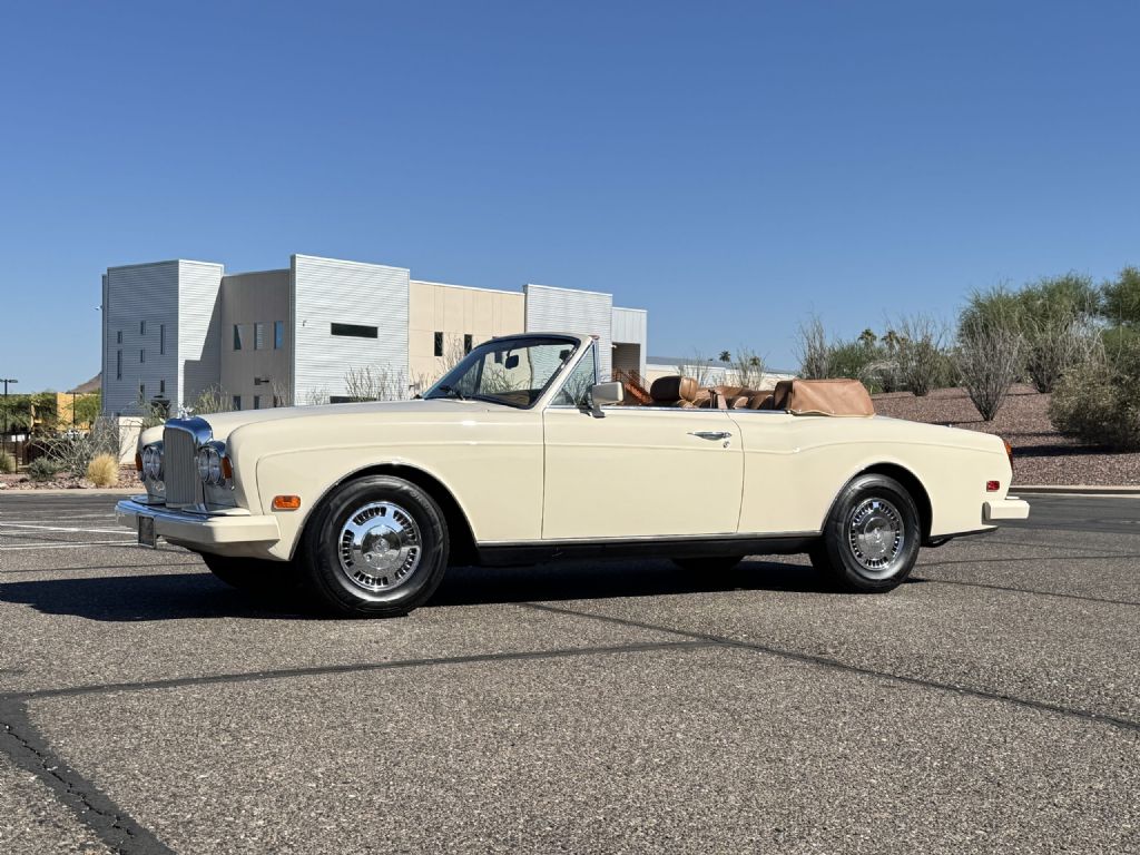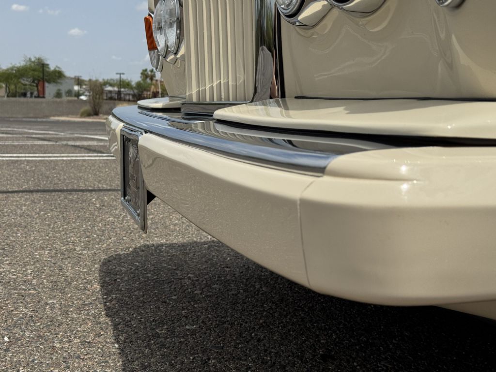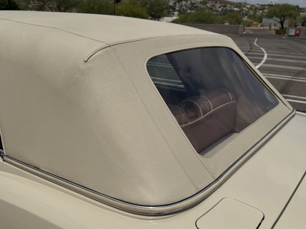 The Bentley exterior is in very good to excellent overall condition. The Magnolia (RR.9620038) paint is in very good to excellent condition with double tan pinstripes. The front exterior has very minor touched up rock chips underneath the headlights from normal use. The color coated bumpers, chrome and stainless steel accents are in very good to excellent condition. The Cream Everflex power convertible top is in very good to excellent condition, functions well, and includes the Tan leather top boot cover. The chrome 15 wheels are in very good condition and the radial tires are all new. This is a well-preserved example that would be a great weekend driver while being a beautiful collectors example that can be proudly shown.