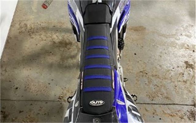 Engine Type: DOHC 4-stroke; 4 titanium valves Displacement: 449cc Bore and Stroke: 97.0mm x 60.9mm Cooling: Liquid Compression Ratio: 13.0:1 Fuel System: Mikuni® fuel injection, 44mm Front Suspension: KYB® spring-type fork with speed sensitive damping; fully adjustable, 12.2 in. travel Front Brakes: Hydraulic disc, 270mm Front Tire: 80/100-21 Dunlop® MX33® Rear Suspension: KYB® single shock; fully adjustable, 12.5 in. travel Rear Brakes: Hydraulic disc, 240mm Rear Tire: 120/80-19 Dunlop® MX33® Dry Weight: Curb Weight: 245 lb. Fuel Capacity: 1.6 gal. Wheelbase: 58.3 in. Ground Clearance: 13.0 in. Seat Height: 38.0 in. Trail: 4.7 in. Rake: 27.0 deg. Transmission: 5-speed; multiplate wet clutch Final Drive: Chain Colors: Team Yamaha Blue, Gray