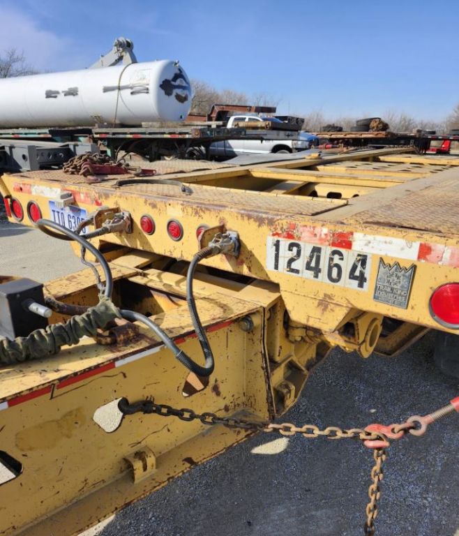 This 2006 Trail King TK130 is a heavy-duty 7-axle combination trailer built for serious hauling capacity. Featuring a 26' x 8'6" mini deck with a low 14" ride height and just 4" of ground clearance, it's designed for maximum stability and maneuverability. The trailer includes windmill fender brackets (no fenders), a modular rear wheel section, and is California legal on 6 axles. The rear axle is a lift axle for added efficiency and flexibility. With a 65-ton payload capacity, 55,000 lb empty weight, and combination construction, this unit is ideal for heavy equipment transport. Tires and brakes are all in good condition with 60r better life remaining. Call today for more details or to make an offer on this capable and road-ready hauler.