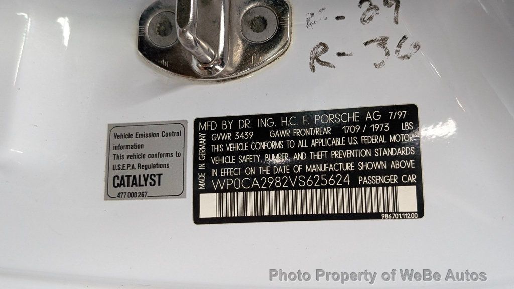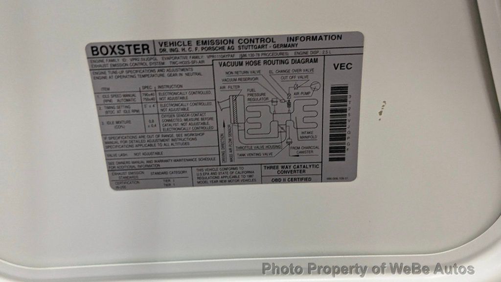 1997 Porsche Boxster 5-Speed For Sale Excellent Condition With Only 41,965 miles Cold Air Conditioning 2.5 Liter Flat-Six Engine Five-Speed Manual Transaxle 17 Carrera-Look Twist-Spoke Wheels With Michelin Pilot Sport All Season Tires Four-Piston Porsche-Branded Calipers With Vented Rotors Glacier White Paint With a Savanna Beige Partial Leather Power, Black Convertible Soft Top Speed-Activated, Deployable Rear Spoiler Side Air Intakes Roll Hoops Savanna Beige Leather Interior ~ Leather Dash and Door Panels Leather-Wrapped Steering Wheel Automatic Climate Control Alpine Bluetooth Stereo Cruise Control Porsche Slide-On Bra Full Tool Roll Cargo Net Window Sticker, Service Records and Owner's Manual Included So Much Fun to Drive! For Sale By Owner Located In West Babylon, NY 11704 Take A L@@K At The Video On YouTube: https://youtu.be/gusOWsnVOek Follow This Link To Over 100 High Resolution Photos: https://photos.app.goo.gl/HHEYo6hnwZPU Uu216 WeBe Autos Specializes in Marketing and Advertising Muscle, Classic, Vintage and Specialty Cars. We offer Professional Photography, HD Movies, and Staging that Sells Cars. Let us showcase and sell your specialty car. Please visit our website for more details. Keep in Touch, Michael Runnalls Specialty Car Marketing & Media WeBe Autos Ltd. Long Island, NY 11780 Michael@WeBeAutos.com www.WeBeAutos.com (O)631-339-0399 (C)516-729-2003 Skype: webeautos (F)631-389-2605 - - Air Conditioning, Climate Control, Power Steering, Power Windows, Power Door Locks, Power Mirrors, Leather Steering Wheel, Power Drivers Seat, Power Passenger Seat, Tachometer, Telescoping Steering Wheel, Driver Airbag, Passenger Airbag, Fog Lights, AM/FM, Cassette, Full Leather Interior Surface, Heated Mirrors, Rear Fog Lamps, Rear Spoiler, Rear Spoiler - Contact Michael Runnalls at 631-339-0399 or Michael@WeBeAutos.com for more information. -