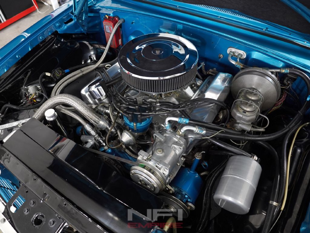 Under the hood, a 427ci Big Block Ford delivers the goods, topped with a Holley carburetor and Edelbrock Performer intake. The C6 automatic transmission, paired with a B&M shifter and custom linkage, handles the power with ease. Supporting systems include an MSD 6A ignition box, billet power steering reservoir, an aluminum four-core radiator, and an upgraded power booster braking system with front disc brakes.
