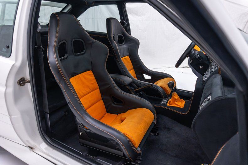 Description: Finished in white, the car is powered by a 2.0-liter inline-four with a Holset turbocharger, which drives all four wheels through a five-speed manual transaxle. It rides on 19 center-lock wheels and is further equipped with Brembo front brake calipers, GAZ coilovers, a front strut brace, a lip spoiler, a rear wing, and a power-operated sunroof. Inside, a pair of OMP fixed-back seats trimmed in black and orange upholstery have been added along with a Sparco steering wheel, a GReddy boost controller, a Pioneer CD stereo, and Alcantara trim.