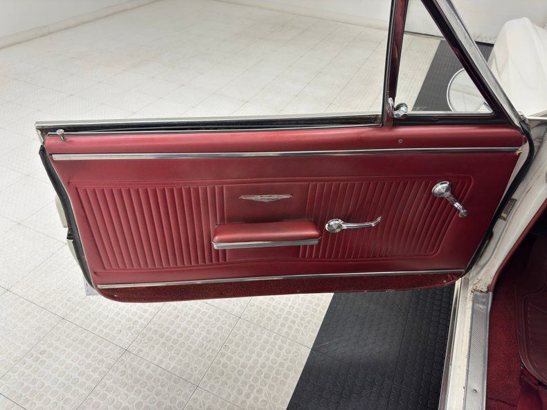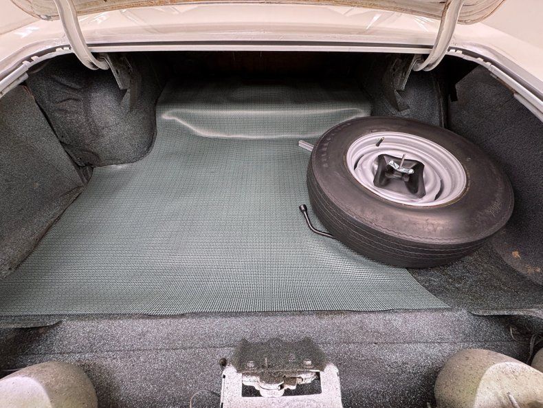 Red vinyl is the choice here and while it appears clean and intact on the door panels, the driver's seat is torn and compressed, and the passenger side has a tear. Conversely, the rear bench looks as if no one has been back there. Red covers the steering wheel and dash surround while wood veneer backs the instrument cluster fronted by the tachometer on the column and this wood shows some age. The AM radio and fan controls appear as they did in 1966 and a pair of more modern gauges are added under the dash to monitor oil and water. A Hurst shifter is offset in the center console to cater to the driver and look original while semi plush red carpet floods the floor, showing a touch of age and the headliner is in great shape, also red. The trunk is clean and contains a period plaid mat and spare tire.