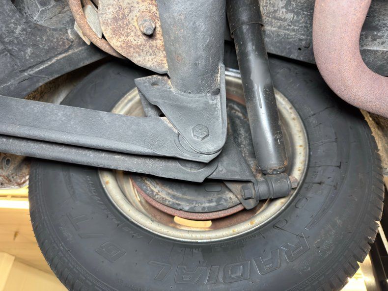 Mainly clean underneath with some driver quality elements including some surface rust on the exhaust and driveshaft and some oil on the rear differential. The pans are dry and the knuckles are clear. Dual exhaust runs through glasspack style mufflers before finding an exit via steel pipes out back. Coil spring suspension occupies the front independent system while a 4 link with coil springs is equipped out back.