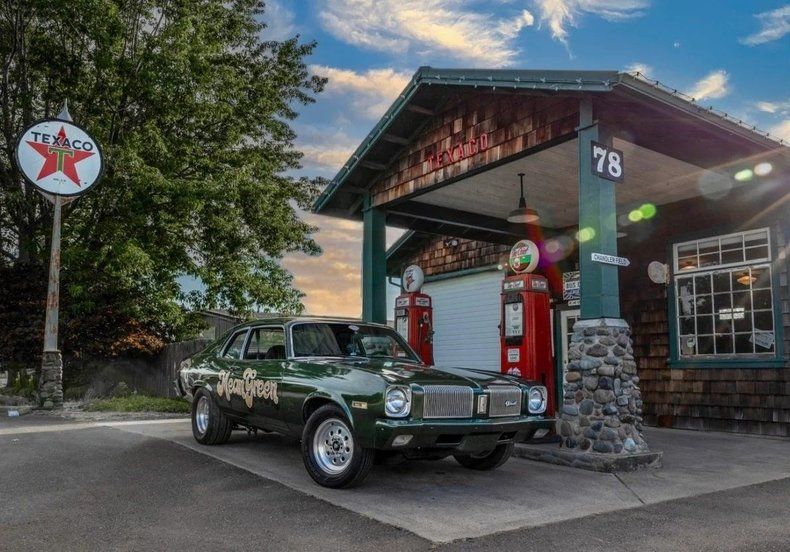 The custom suspension and disc brakes on all four corners ensure serious handling and stopping power. A narrowed custom rear bumper and fiberglass front bumper give it a unique stance, while the GM forest green paint and 1973 front clip complete the retro look. The interior features updated front vinyl and a fresh headliner with hard-to-find sail panels. Rear seat vinyl is redone but needs foam work.