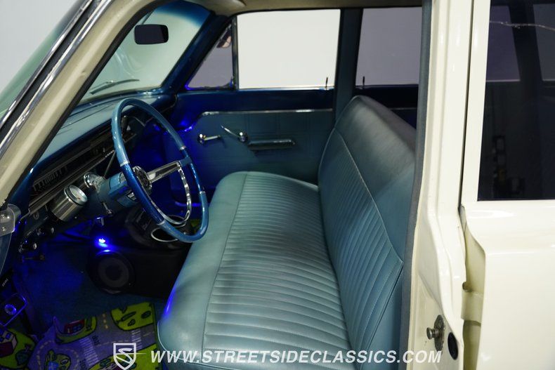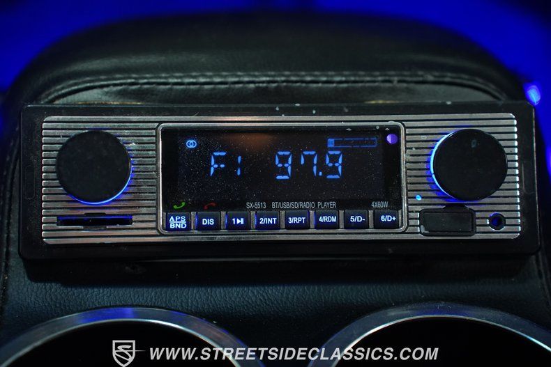 Inside, two rows of bench seating provide plenty of room for passengers and feature gray vinyl upholstery that still looks well-fitted and clean. This interior also has a level of functionality you'll appreciate if you intend on frequent driving. The heater, emergency brake, and lights all work as intended, and the windows throughout the cabin roll up and down without issue. There are also a few well-chosen add-ons that create a nice, custom appearance, including a compact center console that blends well with its surroundings and houses an AM/FM stereo with a USB port and Bluetooth connectivity, as well as a trio of Sunpro gauges that sit just above it. The added blue LED lighting serves as an additional reminder that this interior has received some aftermarket attention.