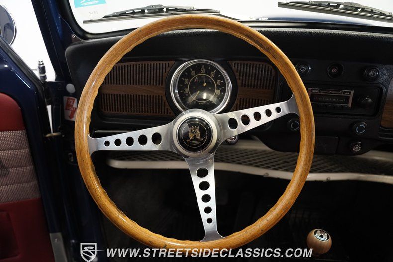 1600 CC Engine With a 2-Barrel Solex Carburetor 3-Speed Automatic With VW Autoshift, And Floor Shifter Independent Front Suspension Swing Rear Axle Design Disc Front Brake 15-Inch Wheels Front And Rear 165R15 BFG Radial Tires 2020 Date Code Red Vinyl Seats and Door Panels With Tan Cloth Inserts Black Dashboard With Woodgrain Style Trim AM/Aux Radio