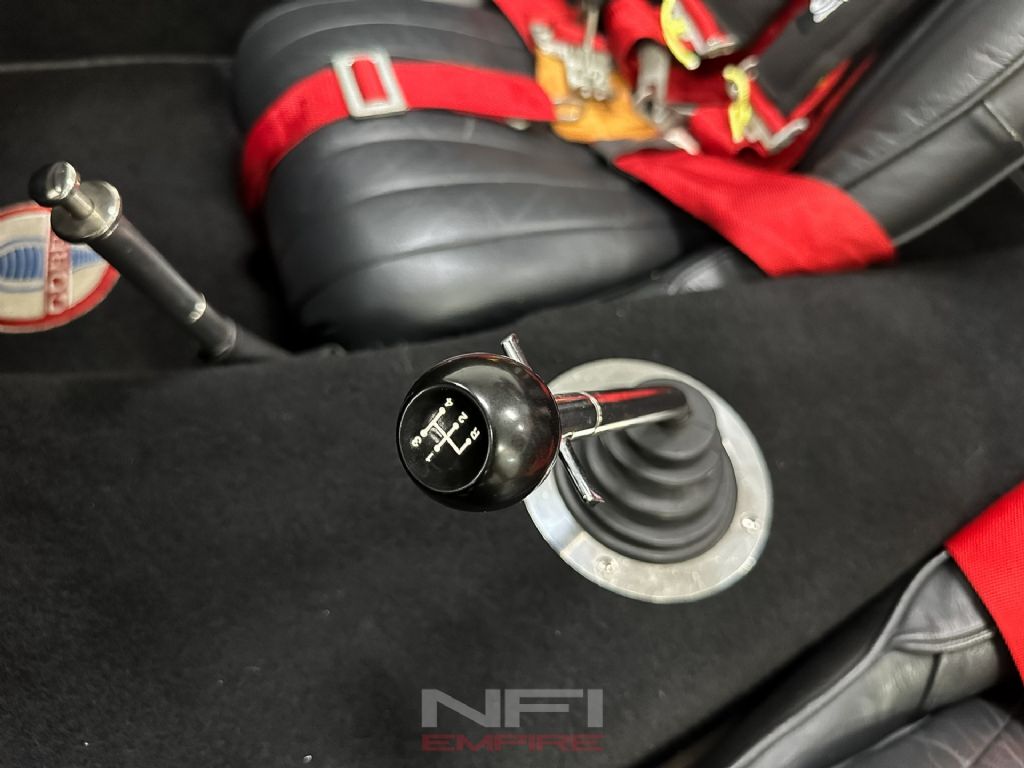 The 4-speed manual puts you in command, backed by 3.73 gears, coilovers, and sway bars front and rear to keep all that muscle pointed in the right direction. Inside, it's stripped down and purposeful: black upholstery, clean dash with clearly labeled switches, classic Smiths gauges, and Diest racing harnesses to keep you planted when the road gets lively. Rolling on 15-inch wheels with 245/60 tires up front and 295/50s in the back, it has the right stance and grip to match its bite.