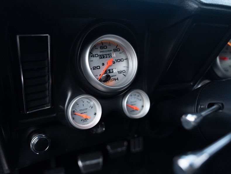 Interior: Recaro Bucket Racing Seats G Force Pro Series 4 Point Racing Seat Belts Billet Steering Wheels Autometer Gauges Tremec 5 Speed Shifter Roll Cage Fire Extinguisher Vintage A/C Alpine Radio System SS Floor Mats Custom Trunk Kit With Battery Shut Off Total Mobile Audio Amplifiers Billet Door & Window Handles