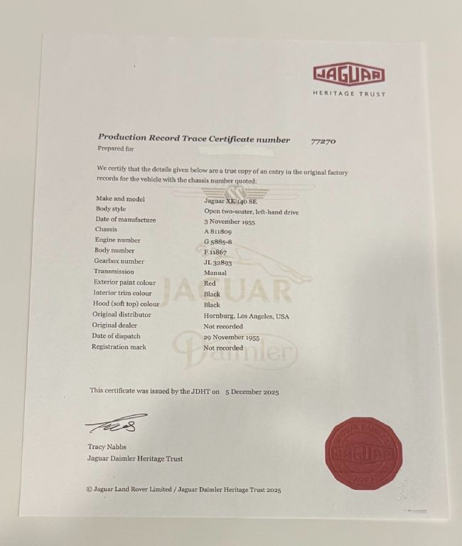 An excellent matching number example of an XK140 Roadster having had a thorough frame up restoration on a rust-free, original car.
