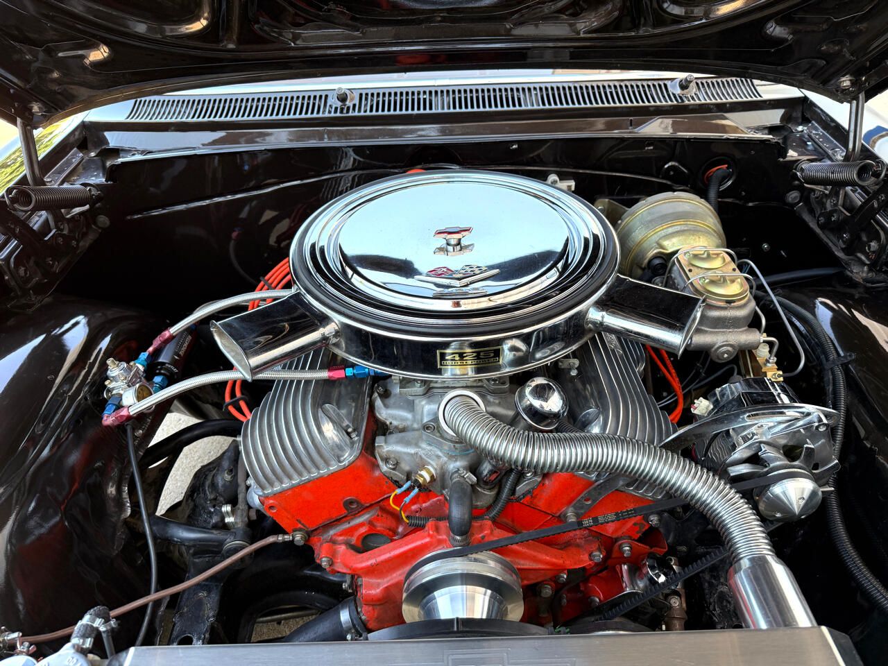 KC Classic Auto is proud to present this AMAZING 1963 Biscayne, A.K.A. Julie Brown!This Biscayne has undergone a comprehensive frame-off restoration with less than 200 miles since completion! Refinished in a beautiful Brown metallic. The paint and body and are in EXCELLENT condition, with a few minor flaws (see photos) and painted undercarriage to match the body. Pictures do this car no justice.its SOLID and VERY nice all the way around.The custom Saddle interior is in excellent condition! Tinted windows, Dakota Digital gauges, tilt steering column and a custom steering wheel have also been added.Powered by a recently rebuilt 409ci V8 with a Chevy aluminum intake and 2x4bbl Carter carb setup! It also has Offenhauser valve covers, Sanderson Street Rod headers, custom exhaust with Magnaflow mufflers and electronic cutouts controlled by a switch under the dash, Holley electric fuel pump, billet pulleys, large aluminum radiator with electric fans and more!Power is sent to the ground with a Muncie 4-Speed manual transmission with an SFI certified bell housing and Hurst shifter.It also has POL (Performance Online) tubular upper and lower control arms, CPP 4-wheel power disc brake kit with slotted/cross-drilled rotors and vacuum booster, CPP power steering kit, etc!This Biscayne is just plain COOL! Very unique car with great modifications that make it look, sound, and drive great! Visit KC Classic Auto online at kcclassicauto.com to see more pictures of this vehicle or call us at 913-888-1234.