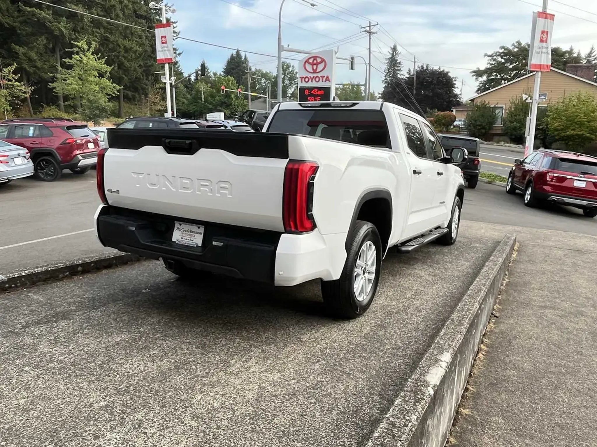 CARFAX 1-Owner, LOW MILES - 12,883! JUST REPRICED FROM $49,541. Keyless Start, Onboard Communications System, iPod/MP3 Input, Satellite Radio, Back-Up Camera, 4x4, Turbo, Bed Liner, Tow Hitch, SR5 CONVENIENCE PACKAGE CLICK NOW! KEY FEATURES INCLUDE Back-Up Camera, Turbocharged, Satellite Radio, iPod/MP3 Input, Onboard Communications System, Trailer Hitch, Aluminum Wheels, Keyless Start. MP3 Player, 4x4, Privacy Glass, Keyless Entry, Steering Wheel Controls. OPTION PACKAGES BLACK DUAL-STEP RUNNING BOARD (TMS), NON-SKID SPRAY-ON BED LINER (TMS), SR5 CONVENIENCE PACKAGE Blind Spot Monitor w/Lane Change Assist, Parking Support Alert/Brake, HEATED POWER BLACK OUTSIDE MIRRORS LED turn signal, Blind Spot Monitor. Toyota SR5 with Ice Cap exterior and BLACK interior features a V6 Cylinder Engine with 389 HP at 5200 RPM*. AFFORDABLE TO OWN Was $49,541. BUY WITH CONFIDENCE CARFAX 1-Owner OUR PROMISE McCords Vancouver Toyota-Scion is a family owned and operated dealership since 1982. Our promise is to provide our customers with the best possible reconditioned used car on the market. We will run every used vehicle we offer for sale against the NHTSA (National Highway Traffic Safety Administration) recall data base and will address any recall before we sell it to you. Every used car is run through a 160 point quality control inspection- We pay our mechanics to find any issues so you dont have to. We offer a 5 day 500 mile No Questions Asked money back guarantee, a 12mo/12k mile limited powertrain warranty on any vehicle that is 14 years or newer and has less than 125k miles. The warranty allows you to fix the vehicle at any shop that you choose- not just us. Plus our Certified Toyota program that gives you 1yr/12k mile comprehensive warranty coverage and 7yr/100k mile powertrain coverage. MCCORDS VALUE PRICE We research our market and Value price every vehicle we offer for sale with a very competitive price. Less time negotiating and more time finding the vehicle that best matches your wants and needs. We look forward to your visit. Pricing analysis performed on 12/20/2025. Horsepower calculations based on trim engine configuration. Please confirm the accuracy of the included equipment by calling us prior to purchase.