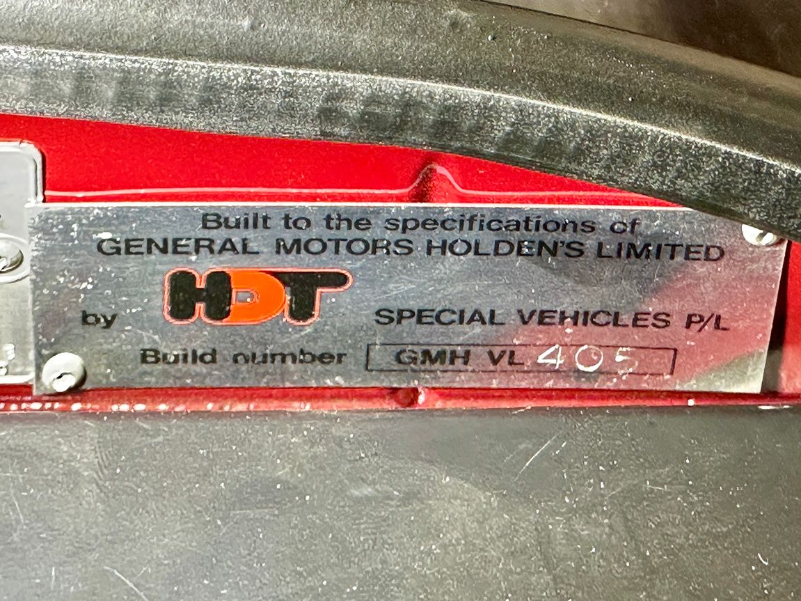 Build Date: 1986 Make: Holden Model: HDT VL SS Group A Plus Pack Body Type: Sedan Transmission: Manual 5 Speed (M39) Exterior / Interior colour: Permanent Red (1F047D) / Light Grey (15I) Engine Type: 4.8LT V8 (LV2) Odometer: 61867 Kms showing VIN / Chassis No.: J117290/AVL027754M Engine Number: VW571530 Fuel: Petrol