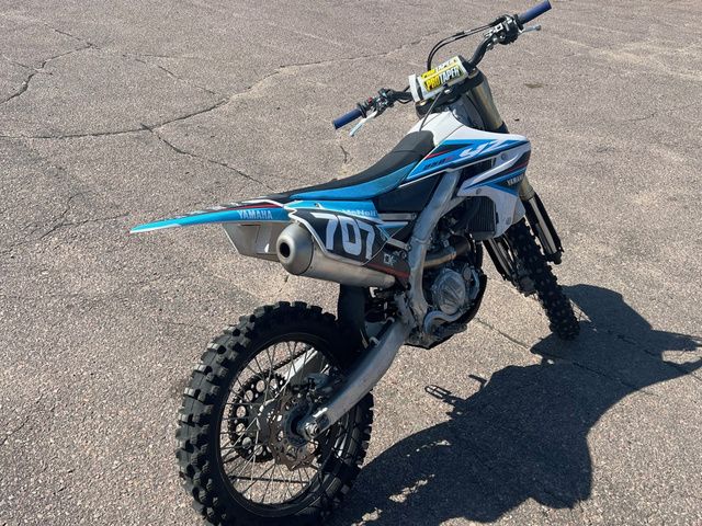 Engine Type: Liquid-cooled DOHC 4-stroke; 4 valves Displacement: 250cc Bore and Stroke: 77.0mm 53.6mm Cooling: Liquid Compression Ratio: 13.8:1 Fuel System: Mikuni® fuel injection, 44mm Front Suspension: KYB® Speed-Sensitive System inverted fork; fully adjustable, 12.2-in travel Front Brakes: Hydraulic disc, 270mm Front Tire: 80/100-21 Bridgestone® Battlecross® X20F Rear Suspension: KYB® single shock; fully adjustable, 12.5-in travel Rear Brakes: Hydraulic disc, 245mm Rear Tire: 100/90-19 Bridgestone® Battlecross® X20R Dry Weight: Curb Weight: 234 lb. Fuel Capacity: 1.6 gal. Wheelbase: 58.1 in. Ground Clearance: 13.2 in. Seat Height: 38.2 in. Trail: 4.7 in. Rake: 27.33 deg. Transmission: Constant-mesh 5-speed; multiplate wet clutch Final Drive: Chain Colors: Team Yamaha Blue, White
