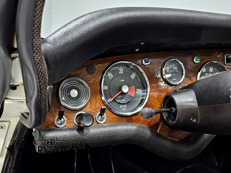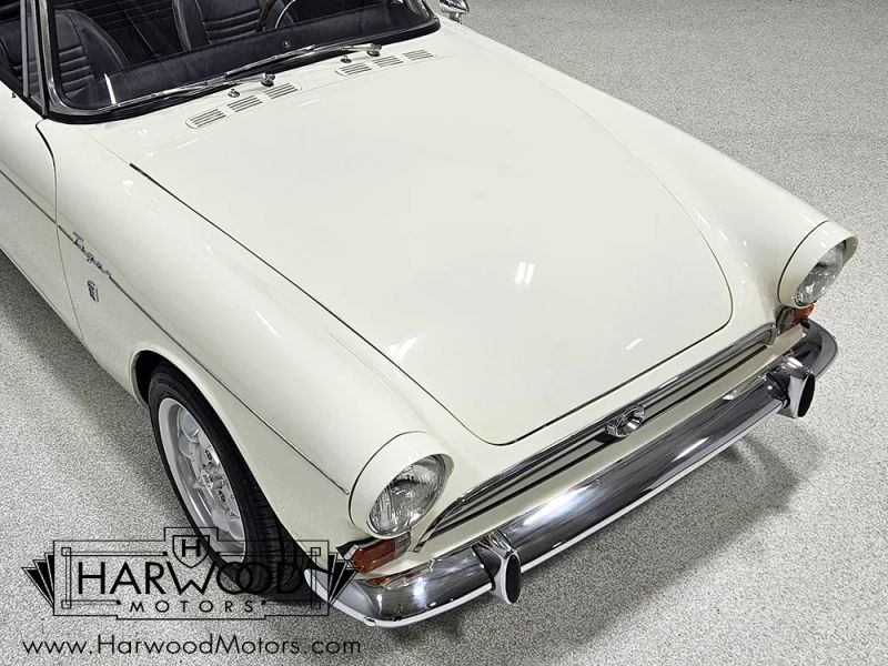 This car was originally sold in Los Angeles, CA in 1966 and remained there until 1999 when the most recent owner brought it to Ohio. As a result, it is extremely clean and solid, something that cant be said of most Tigers, and while it has been restored as needed, it has never needed a complete tear-down. The sheetmetal is in outstanding condition with no issues hiding under the skin, and like most California cars, the undercarriage is super solid. It was refinished in its original Arctic White in 2010, and the finish is holding up extremely well and presents beautifully, with just the right amount of patina for a car that has been used and enjoyed as intended. The doors fit neatly, the hood closes easily, and all the gaps are consistent, which isnt necessarily the case with a lot of hand-built British sports cars. Most of the chrome and stainless trim was refinished, including the bumpers, and it proudly wears correct V8 emblems, a small warning to anyone who might decide to tangle with the formidable Tiger.