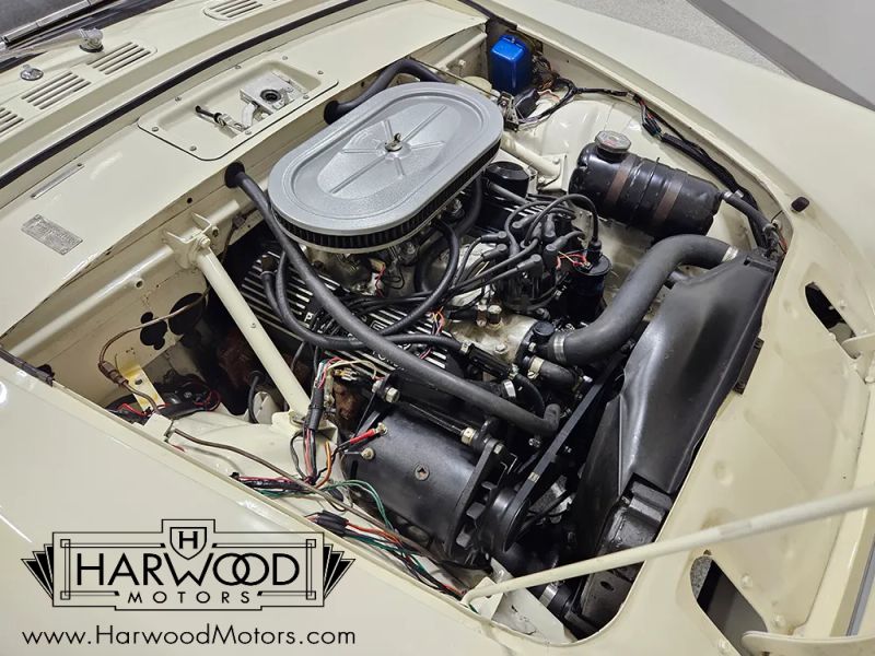The interior is mostly original and holding up quite well, another hallmark of the mild California climate. The carpets have been replaced, the lovely wood steering wheel was rebuilt by Ken Corbin, and both the speedometer and tachometer have been recently rebuilt by West Valley Instruments. Slide into the bucket seat and youll find that its easy to get comfortable, although big shoes or boots are probably a mistake since the pedals are pretty tight. The wide array of instruments monitor the warmed-over small block Ford under the hood and all of the various switches, dials, and lights work properly. Theres a Hurst cue ball shifter on top of a short-shift linkage for the HEH-E Toploader close-ratio 4-speed, making missed shifts a thing of the past, even in the heat of combat. A new Robins top was installed in 2011, along with a correct boot, although wed argue that the top is for emergency use only-Tigers always look best top down. And theres a surprisingly large trunk that has a correct mat and side panels, plus a correct spare and jack assembly stowed underneath, along with the battery.