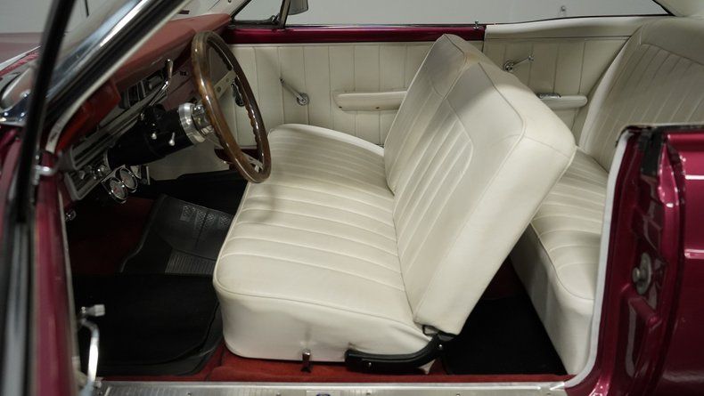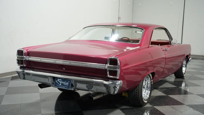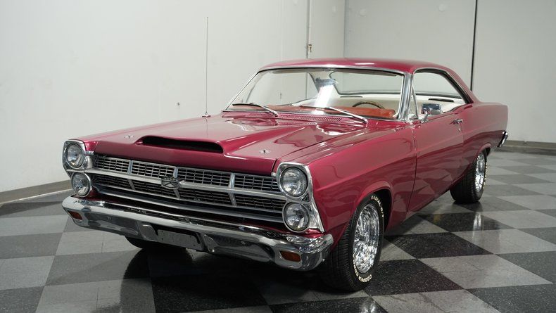 Here is a truly cool-looking 1967 Ford Fairlane 500 muscle car. The Cranberry Red Metallic paint job pairs perfectly with the white interior. It has an awesome stance on a set of classic Cragar Wheels. The chrome front and rear bumper connect well with the rest of the chrome tidbits. The big front grille looks in good shape and locks in great with the 427-style ram air hood. The trunk is custom and amazingly clean with white vinyl padding surrounding the burgundy/red carpet floor. All things considered, this is a straight and solid cruiser for nice days and weekend fun.