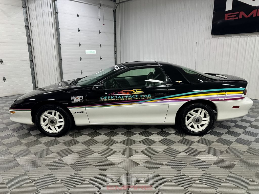 This 1993 Chevrolet Camaro Z28 Indy Pace Car is an exceptionally preserved example of one of GM's rarest pace car editions, showing just 5,500 miles from new. One of only 645 produced for the 77th Annual Indianapolis 500, it stands out with its distinctive exterior graphics and matching graphite sport cloth interior with bucket seats.