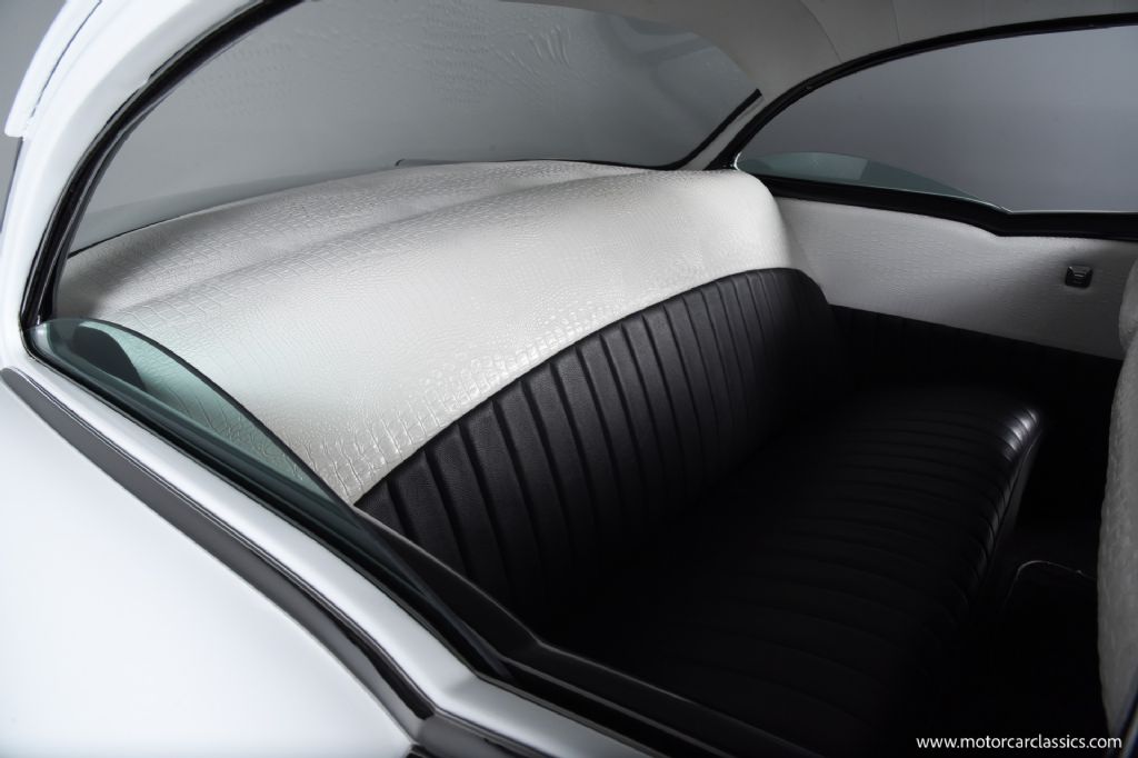 1956 Chevrolet 210 Custom for sale! Motorcar Classics is proud to present this custom 1956 Chevrolet 210 that has been treated to a full frame-off, rotisserie restoration, executed with meticulous attention to detail throughout. Its sleek, laser-straight body is finished in a stunning mirror-like Black and White paint scheme, complemented by matching Black and White interior trim. The exterior is enhanced with 17-inch American Racing aluminum wheels, chrome bumpers, and polished trim all around, giving the car a timeless yet commanding presence.