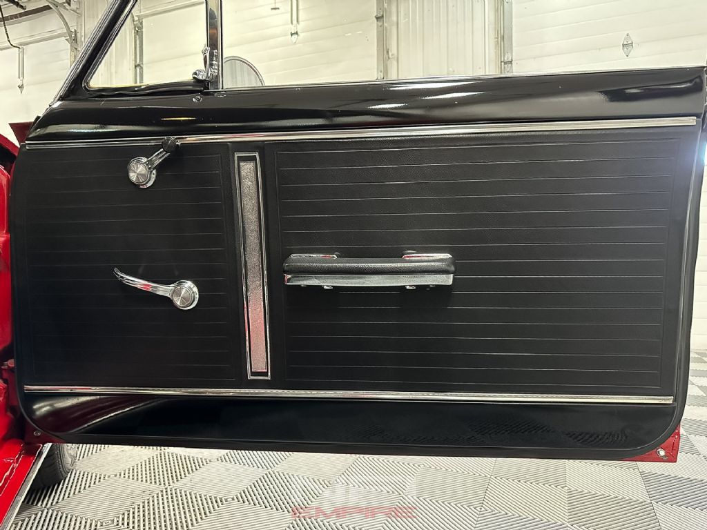 Under the hood sits a rebuilt 327ci small-block Chevrolet V8, fitted with a Comp cam, Scorpion rocker arms, aftermarket valve covers, long-tube headers, and a Holley Sniper EFI system for modern reliability and crisp throttle response. The engine runs on pump gas and exhales through a Flowmaster American Thunder exhaust system with Super 44 mufflers, delivering the right muscle car tone. Supporting upgrades include a new alternator, radiator, and driveshaft. A Tremec TKO 5-speed manual transmission handles shifting duties, paired with a new 9-inch rear end and 3.50 gears.