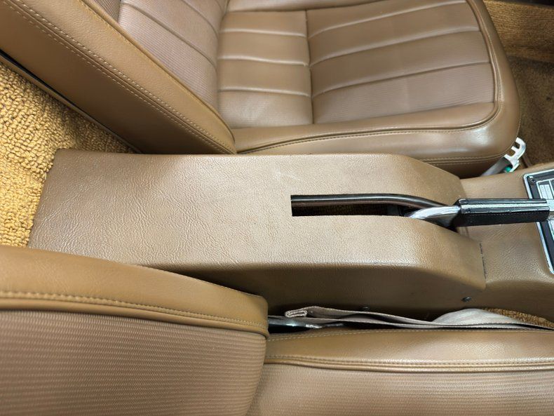 Buyers could select from eight interior colors too and the original owner checked the Saddle box for an interior with brown tones that is a fine choice. It begins on the plastic molded door panels with perforated vinyl inserts to dress things up a bit. The vinyl bucket seats, thin and flat by today's standards, are sporty for the time and include head restraints and chrome knob adjusters at the base. The steering wheel is also consistent with the times, large and thin with finger grooves molded into the plastic rim. There's some chipping on the paint of the column and it leads to textured plastic surrounding the black faced gauges including a speedometer that reaches 160mph. Black plastic surrounds the vast gauge package in the center stack which is followed by an AM/FM/Cassette radio, indicator lights, then the center console itself with some typical patina. This has the vent controls, shift diagram, spec plate, and of course, the shifter itself, in this case, a Hurst. Tan carpet covers the floor and the rear cargo area in good condition.