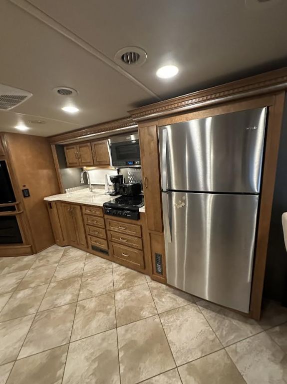 With aluminum wheels, Michelin tires, air suspension, air brakes, and a 20-foot electric awning, this motorhome is ready for extended travel in comfort and style.
