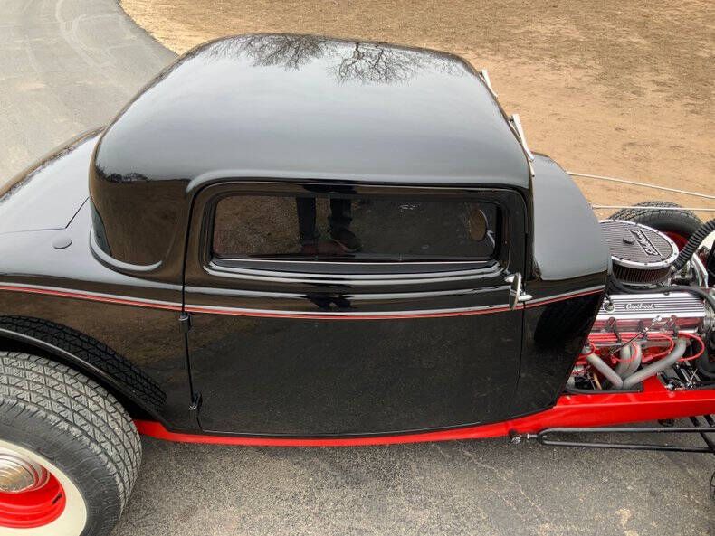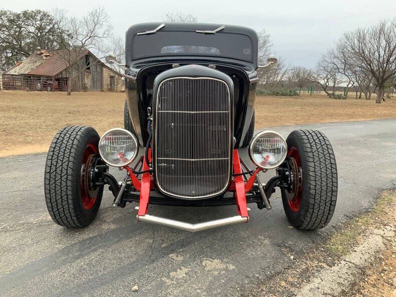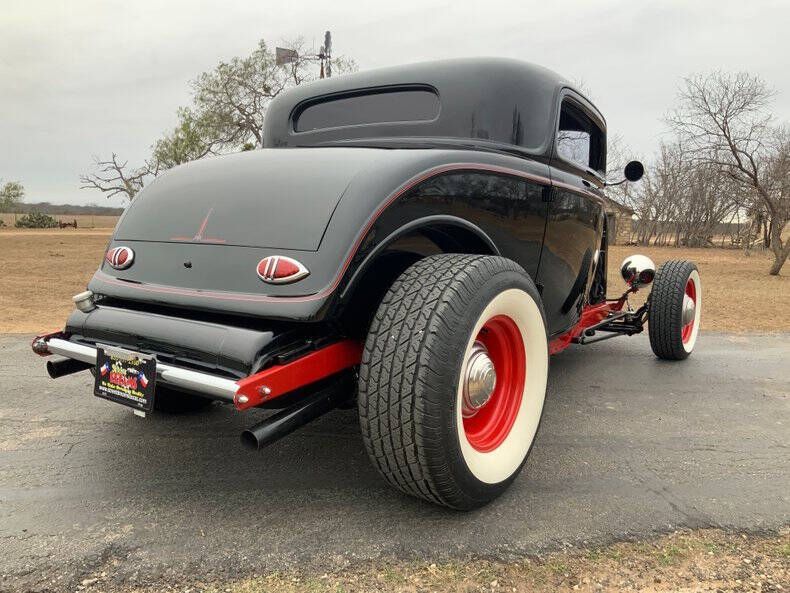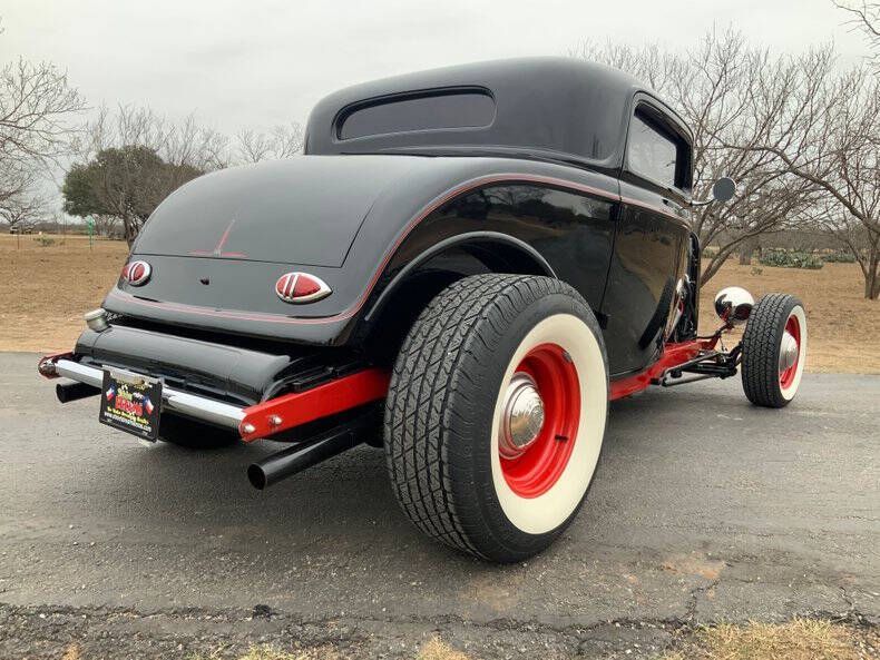 1932 Ford Highboy 3-Window Deuce Coupe Located at Street Dreams - 1229 Texas Ave Shreveport, LA - Call for more information: (318) 210-0982 Welcome to Street Dreams as we celebrate our 26th year in classic car and memorabilia sales! Few cars embody the heart of American hot-rodding like the 1932 Ford Deuce Coupe. The Highboy stance, chopped roofline, and open engine bay have made it the definitive icon of hot rod culture for over 90 years. This 3-Window Coupe was built to capture that legendary style while adding modern performance and comfort. With 435hp from a 355ci V8, Sniper EFI, Vintage Air A/C, and an automatic transmission, it blends the look of a traditional rod with the drivability of a modern street machine! Drivetrain & Performance * Engine: 355 ci small-block Chevy V8 (~435 horsepower) * Fuel System: Sniper EFI electronic fuel injection * Intake & Exhaust: Weiand aluminum intake manifold, stainless steel headers, custom dual exhaust * Cooling: PRC aluminum radiator with electric fan * Ignition: HEI high-energy ignition * Transmission: Automatic - easy to drive in town or on the highway * Rear End: Ford 9 - unmatched strength and aftermarket support Chassis & Suspension * Street Rods by Michael chassis (built October 2006) * Fiberglass body * Highboy stance with exposed suspension and dropped front axle * Engineered for both durability and real-world road manners Interior & Comfort * New bomber-style bucket seats with drilled aluminum backplates for a classic, competition-inspired look * Chrome Ididit tilt steering column for driving comfort * Autometer gauge package for accurate monitoring * AM/FM/CD stereo with backup camera * Vintage Air climate control A/C and heat Exterior & Style * Chopped 3-Window body finished in deep black with red frame and accents * Red steel wheels with chrome caps and trim rings wrapped in wide whitewall tires * Ford Twolite headlamps and custom taillights * Period-inspired hot rod touches: 8-ball shifter knob, matching accents on gas cap & valve stems * Smoothed doors and clean body lines highlight the Coupe's timeless profile * Battery Disconnect behind passenger seat The '32 Ford Coupe remains the single most desirable body style in hot rodding. You get power and comfort with a 435hp SBC with EFI, automatic transmission, and A/C, making it as fun to drive as it is to show! If you need reliability- this one is built on proven components - small-block Chevy power, Ford 9 rear, modern cooling and wiring! Want one car show ready? With crisp paint, the perfect stance, and thoughtful details, it's guaranteed to get attention anywhere! Like a great investment? Quality Deuce Coupes like this remain in steady demand, making them easier to resell and more stable in value than many other classics! Own the most iconic hot rod ever built - with the horsepower, stance, and style to back it up! Street Dreams is a full-service dealership committed to helping you secure trusted delivery, insurance, and financing services to complete your classic car purchase. While we're happy to assist in arranging shipping through reputable carriers, all transportation costs are the responsibility of the buyer. Contact Information for Shreveport Showroom: Office: 318-210-0982 Email: Contact@streetdreams-la.com Address: 1229 Texas Ave, Shreveport LA 71101
