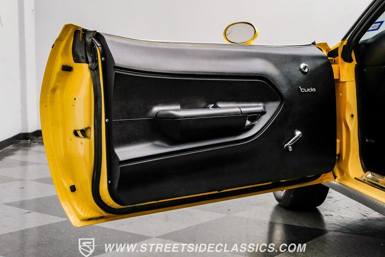 Fully restored frame-off restoration with detailed restoration photos on a display board Period correct 440 V8 w/ Six Pack intake with 3 Holley carburetors 4-speed manual transmission with pistol grip shifter Dana 60 rear axle Power steering Power front disc brakes Rear air shocks Black vinyl bucket seats Lemon Twist full repaint Wheels shod with BFG 225/60R15 front and 245/60R15 rear tires and clean 15 inch rims Dual exhaust exiting out the rear bumper Owners manual, restoration photos, show board and extra spoiler This is a strong, attention-getting Cuda that blends show quality cosmetics with mechanically tasteful upgrades to make it a credible driver and a centerpiece for any collection. Call today!