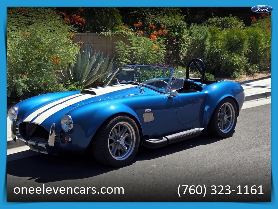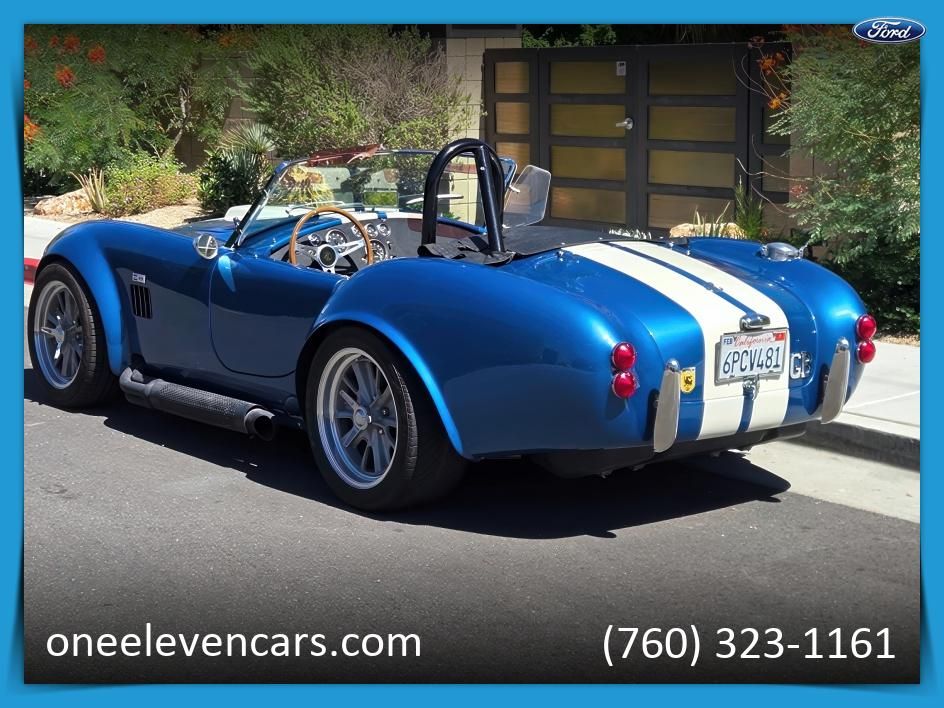 Offered here is a beautiful 1965 Factory Five Cobra replica, finished in striking blue with bold white racing stripes. The car is powered by a strong 5.0L V8 paired to a 5-speed manual transmission, delivering the raw performance and driving excitement that makes these Cobras legendary.. The interior is finished in black upholstery, keeping with the classic race-inspired design. With its light weight and responsive handling, this Factory Five Cobra is built for both spirited drives and weekend shows.. Highlights:. . . Factory Five build quality. . . 5.0L V8 engine. . . 5-speed manual transmission. . . Blue with white racing stripes. . . Black interior. . . Classic side pipes and roadster styling. . . This Cobra offers the perfect combination of timeless 1960s racing heritage with reliable modern performance.... Read the full description on our Website at: www.oneelevencars.com, ... View all the options on our Website at: www.oneelevencars.com.