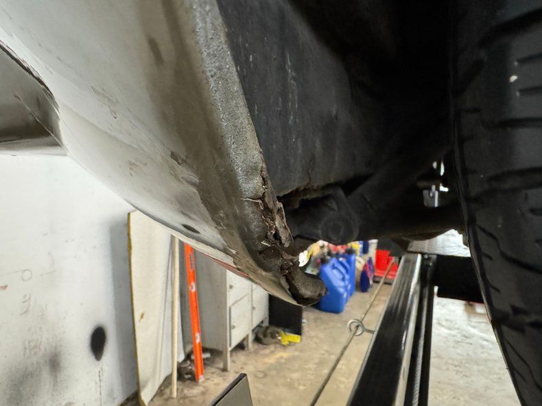 Undercarriage Driver quality conditions prevail underneath with surface rust and patina, including some flaws in the roll pan that wraps under the rear of the car. Four wheel disc brakes are onboard and independent suspension is also front and rear, with torsion bars up front and coil overs in back. The dual exhaust flows through stainless steel mufflers and resonators on their way to the tailpipes.
