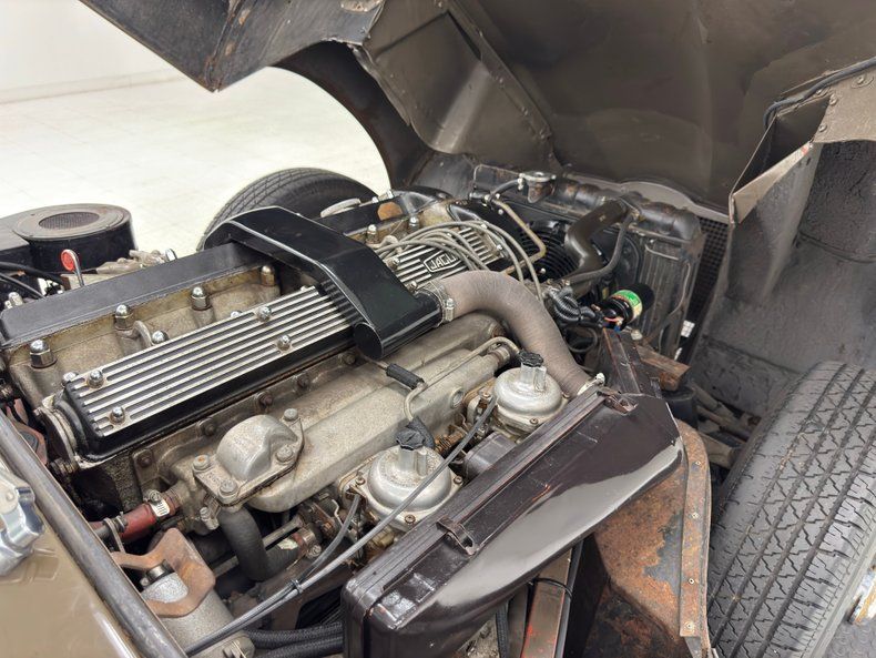 Drivetrain The entire nose pivots forward to reveal a clean 4.2 liter DOHC inline six cylinder with 2 Su carburetors and a rating of 245 horsepower. It is mated to a 4-speed manual transmission sending power to the rear axle and 3.54 gears.