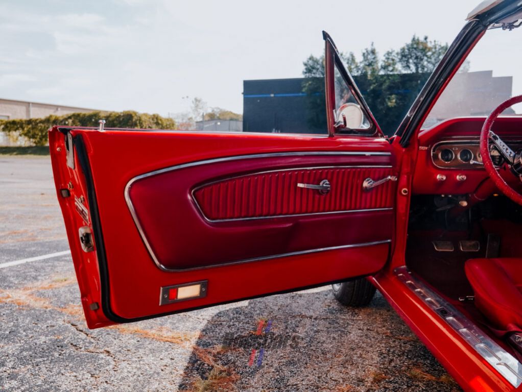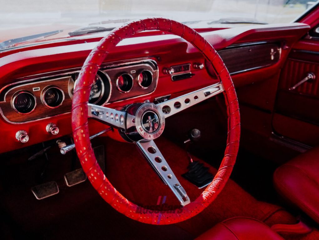 Under the hood, its powered by a 289 cubic-inch V8 with a two-barrel carburetor paired to a four-speed manual transmission the ideal combination for spirited cruising. The car features the highly desirable Pony Interior in matching red, giving the cabin a period-correct and beautifully detailed look. Completing the classic presentation are radial tires with wire hubcaps, a setup that enhances both ride quality and vintage authenticity.