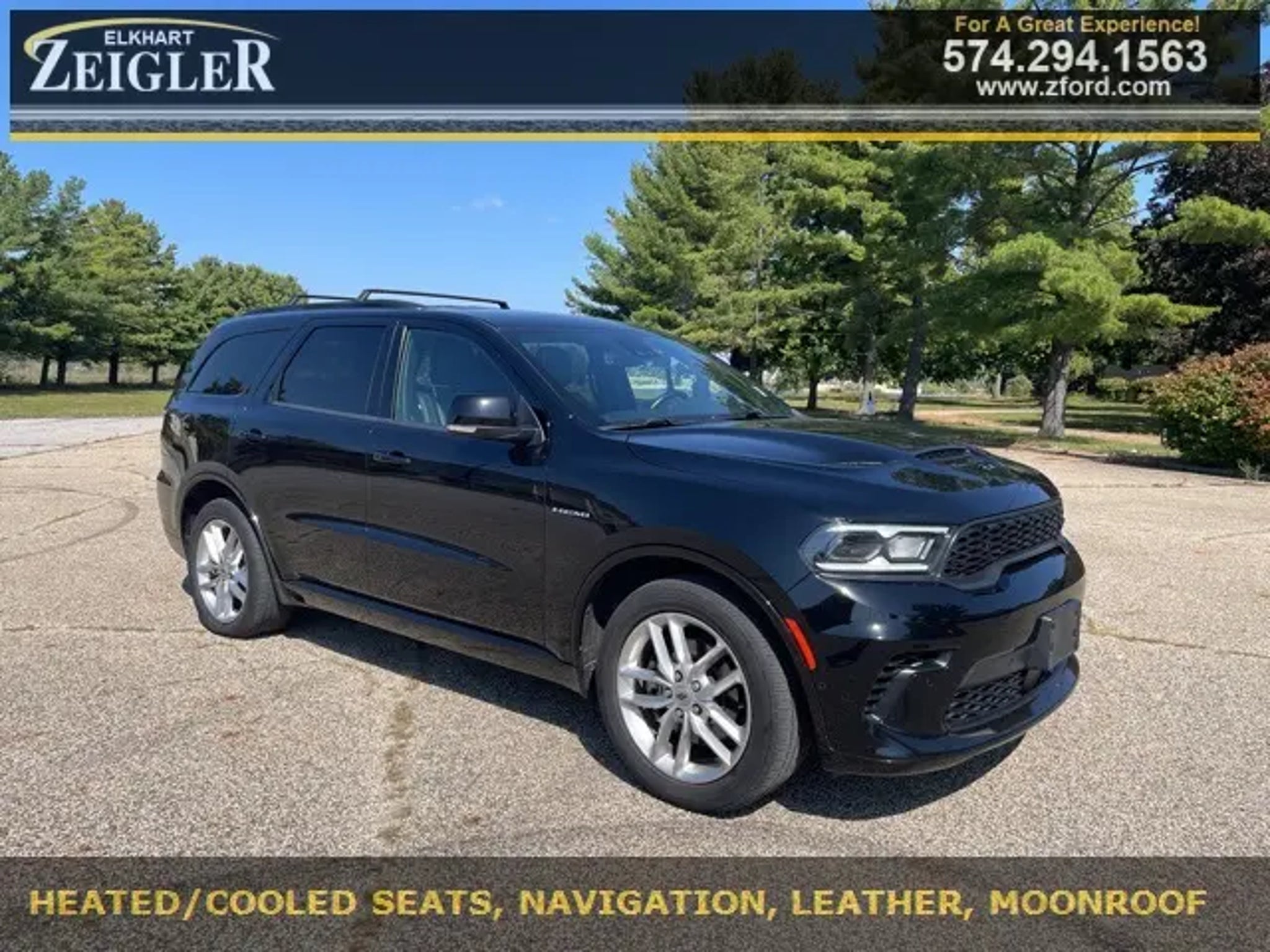 DB Black Crystal Clearcoat 2024 Dodge Durango R/T Plus 4X4 LEATHER, MOONROOF, NAVIGATION, PUSH BUTTON START, REAR VIEW CAMERA, REMOTE START, REVERSE SENSING SYSTEM, ONE OWNER, TRAILER TOW PACKAGE, HEATED SEATS, BLUETOOTH, 4X4, AWD. ****Call or text Felipe Flip Contreras at 574-323-1098 for additional details or to schedule a test drive**** When you choose a Blue Certified vehicle, you'll enjoy benefits that include: *90-Day/4,000-Mile Comprehensive Limited Warranty *Complimentary 24/7 Roadside Assistance *11,000 FordPassTM Rewards Points towards Your First Maintenance Visit Call 574-294-1563 TODAY for additional details! Priced below KBB Fair Purchase Price!