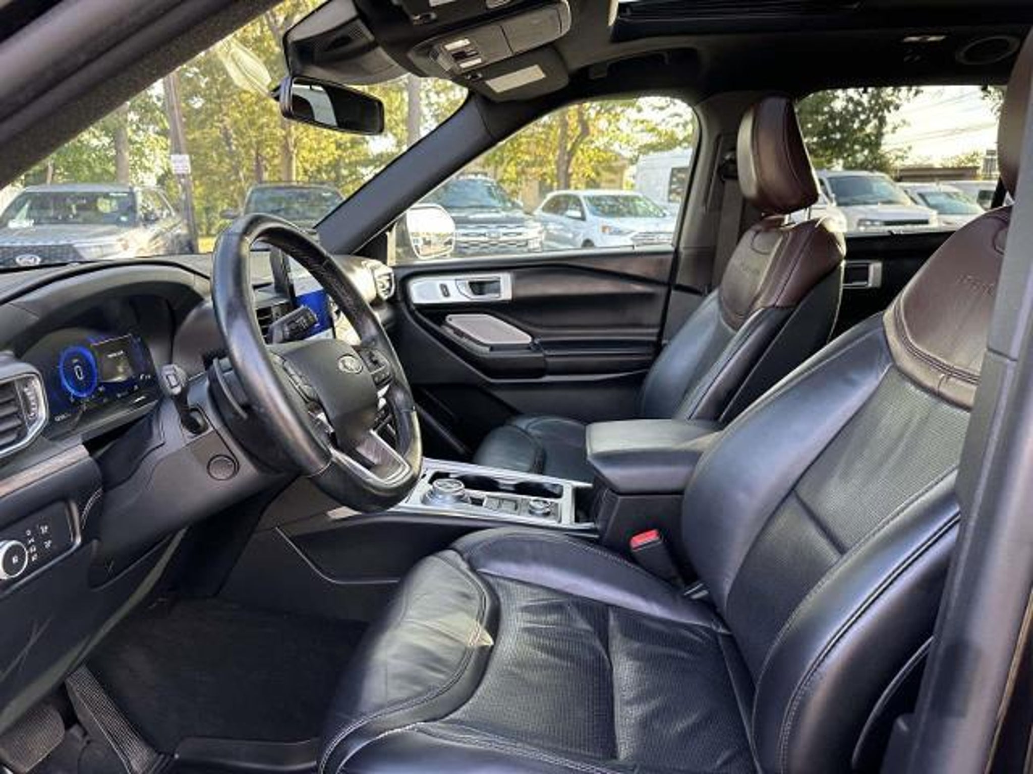 Clean. Agate Black Metallic exterior and Ebony interior. Heated Leather Seats, Sunroof, Navigation, 3rd Row Seat, 4x4, Turbo Charged, Panoramic Roof, Alloy Wheels, Trailer Hitch, TRANSMISSION: 10-SPEED AUTOMATIC W/SE... Captains Chairs KEY FEATURES INCLUDE Leather Seats, Third Row Seat, Navigation, Sunroof, Panoramic Roof, 4x4, Quad Bucket Seats, Power Liftgate, Rear Air, Heated Driver Seat Rear Spoiler, MP3 Player, Keyless Entry, Privacy Glass. Ford Platinum with Agate Black Metallic exterior and Ebony interior features a V6 Cylinder Engine with 365 HP at 5500 RPM*. OPTION PACKAGES TRANSMISSION: 10-SPEED AUTOMATIC W/SELECTSHIFT Active Transmission Warm-Up (ATWU) (STD). A GREAT VALUE Clean Reduced from $23,777. This Explorer is priced $6,600 below J.D. Power Retail. Pricing analysis performed on 1/3/2026. Horsepower calculations based on trim engine configuration. Please confirm the accuracy of the included equipment by calling us prior to purchase.
