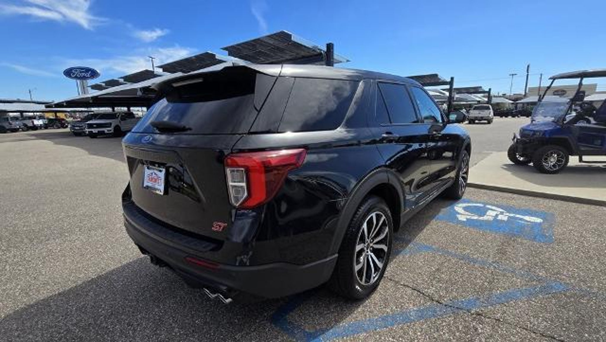 CARFAX One-Owner. Black 2022 Ford Explorer ST 4WD, 1st Row Heated Seats, 20 Machined Aluminum w/Painted Pockets Wheels, Automatic temperature control, Equipment Group 400A, Four wheel independent suspension, Fully automatic headlights, Heated front seats, Power Liftgate, Ventilated front seats. Equipment Group 400A, 4WD, 1st Row Heated Seats, 20 Machined Aluminum w/Painted Pockets Wheels, Automatic temperature control, Four wheel independent suspension, Fully automatic headlights, Heated front seats, Power Liftgate, Ventilated front seats, 3.58 Non-Limited-Slip Rear Axle Ratio, 3rd row seats: bench, 4-Wheel Disc Brakes, 6 Speakers, ABS brakes, Air Conditioning, Alloy wheels, AM/FM radio: SiriusXM, AM/FM Stereo, Auto High-beam Headlights, Brake assist, Bumpers: body-color, Compass, Delay-off headlights, Driver door bin, Driver vanity mirror, Dual front impact airbags, Dual front side impact airbags, Electronic Stability Control, Emergency communication system: SYNC 3 911 Assist, Exterior Parking Camera Rear, FordPass Connect, Front & Second Row Floor Liners (16B), Front anti-roll bar, Front Bucket Seats, Front Center Armrest, Front dual zone A/C, Front fog lights, Front reading lights, Heated door mirrors, Heated steering wheel, Illuminated entry, Knee airbag, Leather steering wheel, Low tire pressure warning, Memory seat, Occupant sensing airbag, Outside temperature display, Overhead airbag, Overhead console, Panic alarm, Passenger door bin, Passenger vanity mirror, Power door mirrors, Power driver seat, Power passenger seat, Power steering, Power windows, Rear air conditioning, Rear anti-roll bar, Rear reading lights, Rear window defroster, Rear window wiper, Remote keyless entry, Security system, SelectShift Capability w/Paddle Shifters, Speed control, Speed-sensing steering, Speed-Sensitive Wipers, Split folding rear seat, Spoiler, Sport steering wheel, Steering wheel mounted audio controls, SYNC 3 Communications & Entertainment System, SYNC 3/Apple CarPlay/Android Auto, Tachometer, Telescoping steering wheel, Tilt steering wheel, Traction control, Trip computer, and Variably intermittent wipers. Odometer is 13451 miles below market average! Call us today at (888) 475-3757!