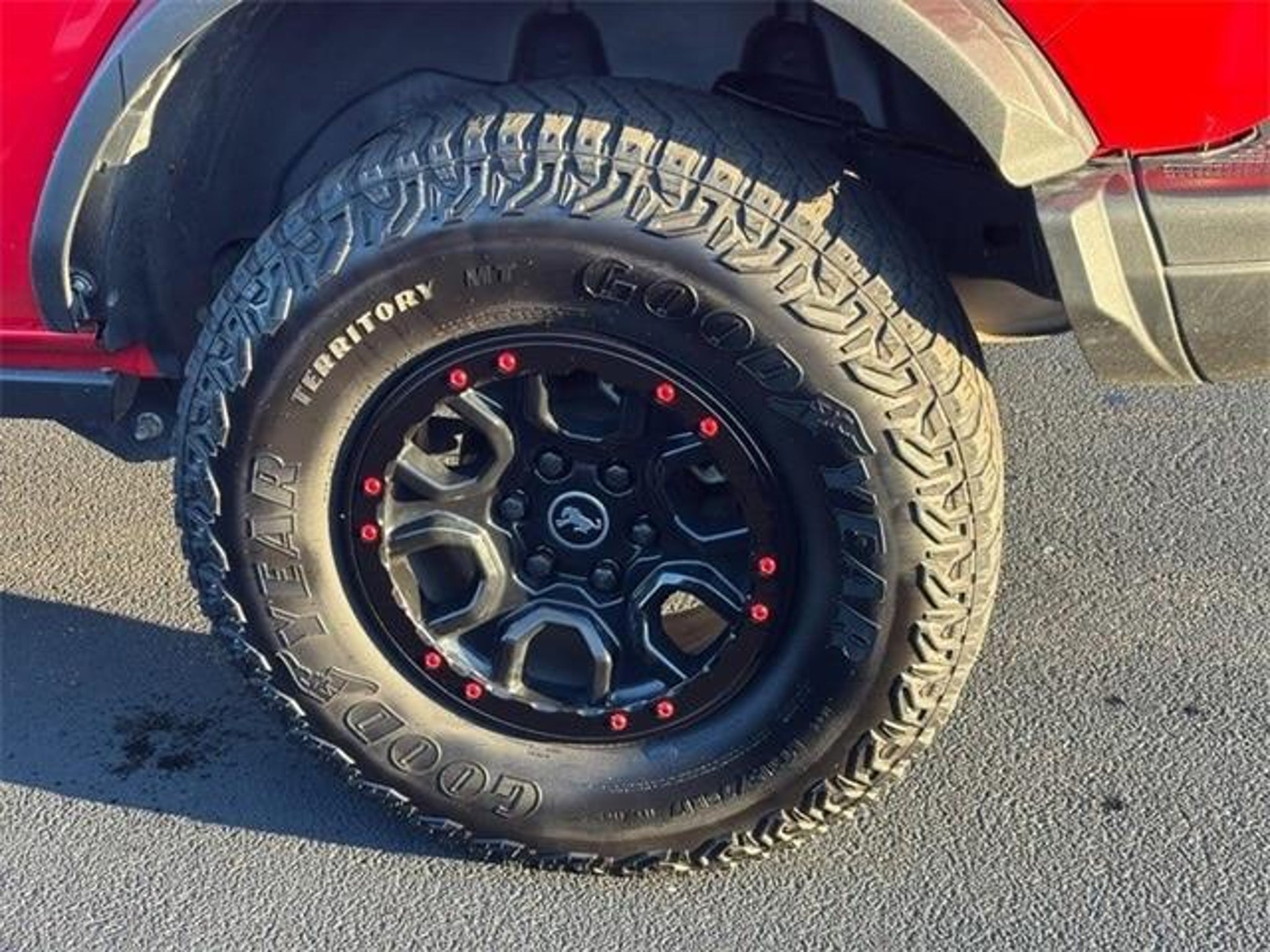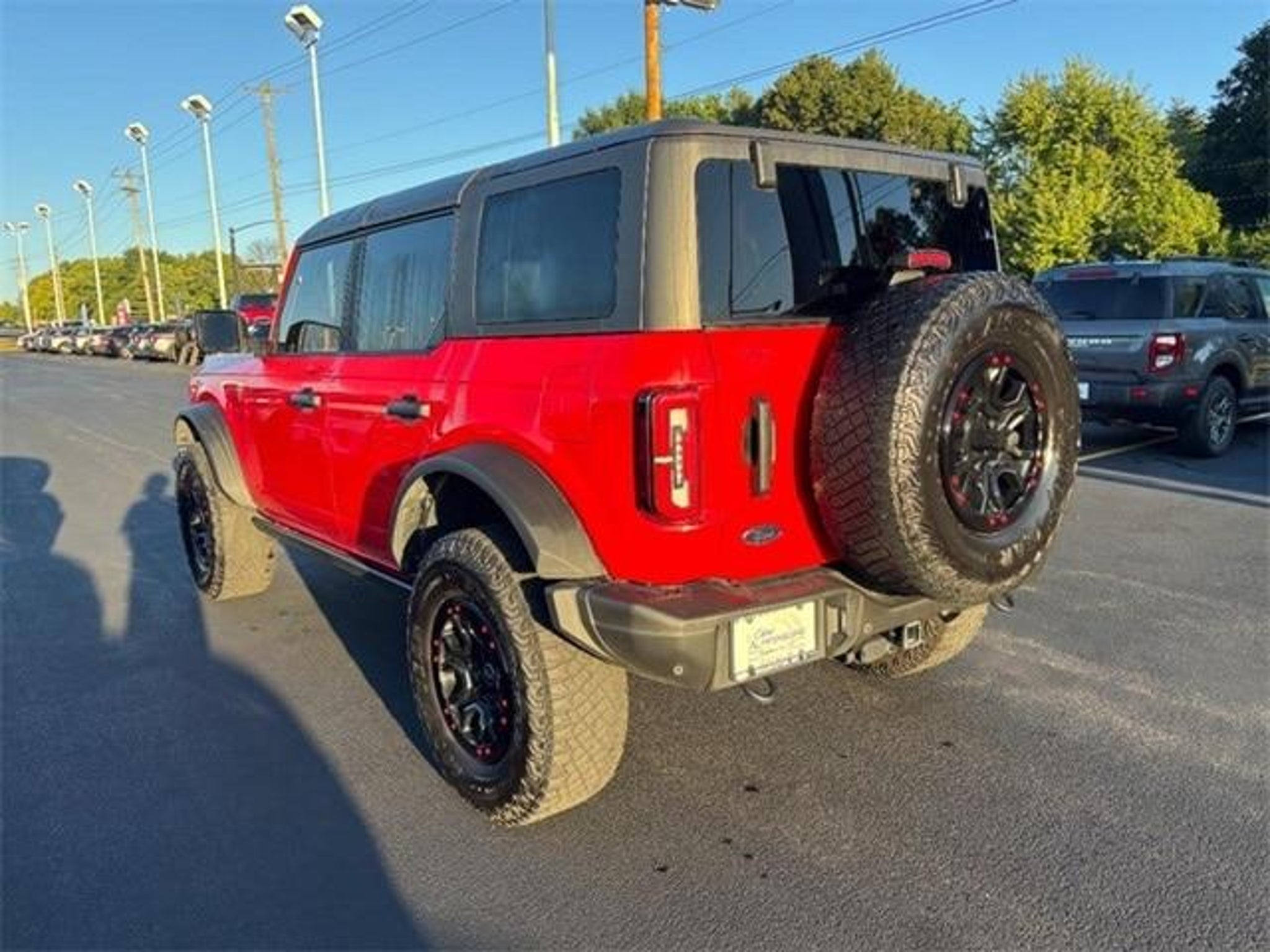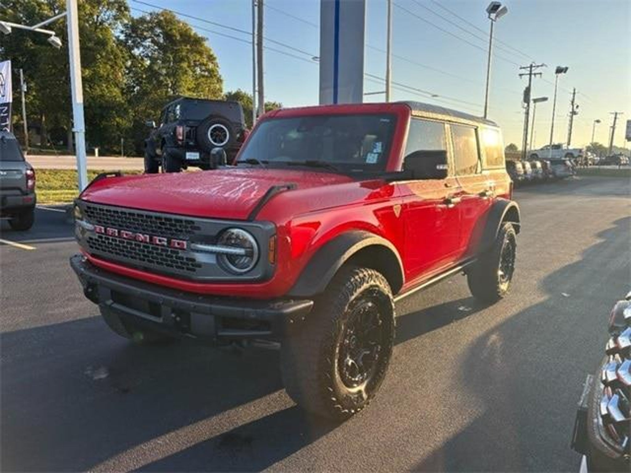 New Price! Race Red 2022 Ford Bronco Badlands 4x4 4WD 10-Speed Automatic 2.7L EcoBoost V6 ONE OWNER!!, CLEAN CARFAX!!, 12 LCD Capacitive Touchscreen w/Swipe Capability, 2 Smart Charging USB Ports In Dashboard, 2-Door Intelligent Access w/Lock/Unlock, 360-Degree Camera, 4-Wheel Disc Brakes, 4.7 Final Drive Ratio, 6 Speakers, ABS brakes, Adaptive Cruise Control, Additional Sound Deadening, Air Conditioning, AM/FM radio: SiriusXM with 360L, AM/FM Stereo, Ambient Footwell Lighting, Auto High-beam Headlights, Auto-Dimming Interior Rear-View Mirror, Brake assist, Compass, Connected Built-In Navigation, Delay-off headlights, Dr & Pass Illuminated Sliding Visor Vanity Mirrors, Driver door bin, Driver vanity mirror, Dual front impact airbags, Dual front side impact airbags, Dual-Zone Electronic Automatic Temperature Control, Electronic Stability Control, Emergency communication system: 911 Assist, Enhanced Voice Recognition, Equipment Group 334A Lux Package, Evasive Steering Assist, Exterior Parking Camera Rear, Front anti-roll bar, Front Bucket Seats, Front Center Armrest, Front Parking Sensors, Front reading lights, Front Row Heated Seats, Front wheel independent suspension, Fully automatic headlights, Heated door mirrors, Heated Steering Wheel, High Clearance Fender Flares, High Clearance Suspension, Illuminated entry, Information on Demand Panel, Integrated roll-over protection, Low tire pressure warning, Occupant sensing airbag, Outside temperature display, Overhead airbag, Overhead console, Panic alarm, Passenger door bin, Passenger vanity mirror, Position-Sensitive Bilstein Shock Absorbers, Power door mirrors, Power Outlet - Back Side of Center Floor Console, Power steering, Power windows, Radio data system, Radio: B&O Sound System by Bang & Olufsen, Rear Parking Sensors, Remote keyless entry, Sasquatch Package, Security system, Sideview Mirrors, SiriusXM Radio w/360L, Speed control, Split folding rear seat, Steering wheel mounted audio controls, SYNC 4, Tachometer, Telescoping steering wheel, Tilt steering wheel, Traction control, Trip computer, Universal Garage Door Opener, Variably intermittent wipers, Wheels: 17 Black High Gloss-Painted Aluminum, Wireless Charging Pad. It's our 34th anniversary, please come see us. Awards: * NACTOY 2022 North American Utility of the Year