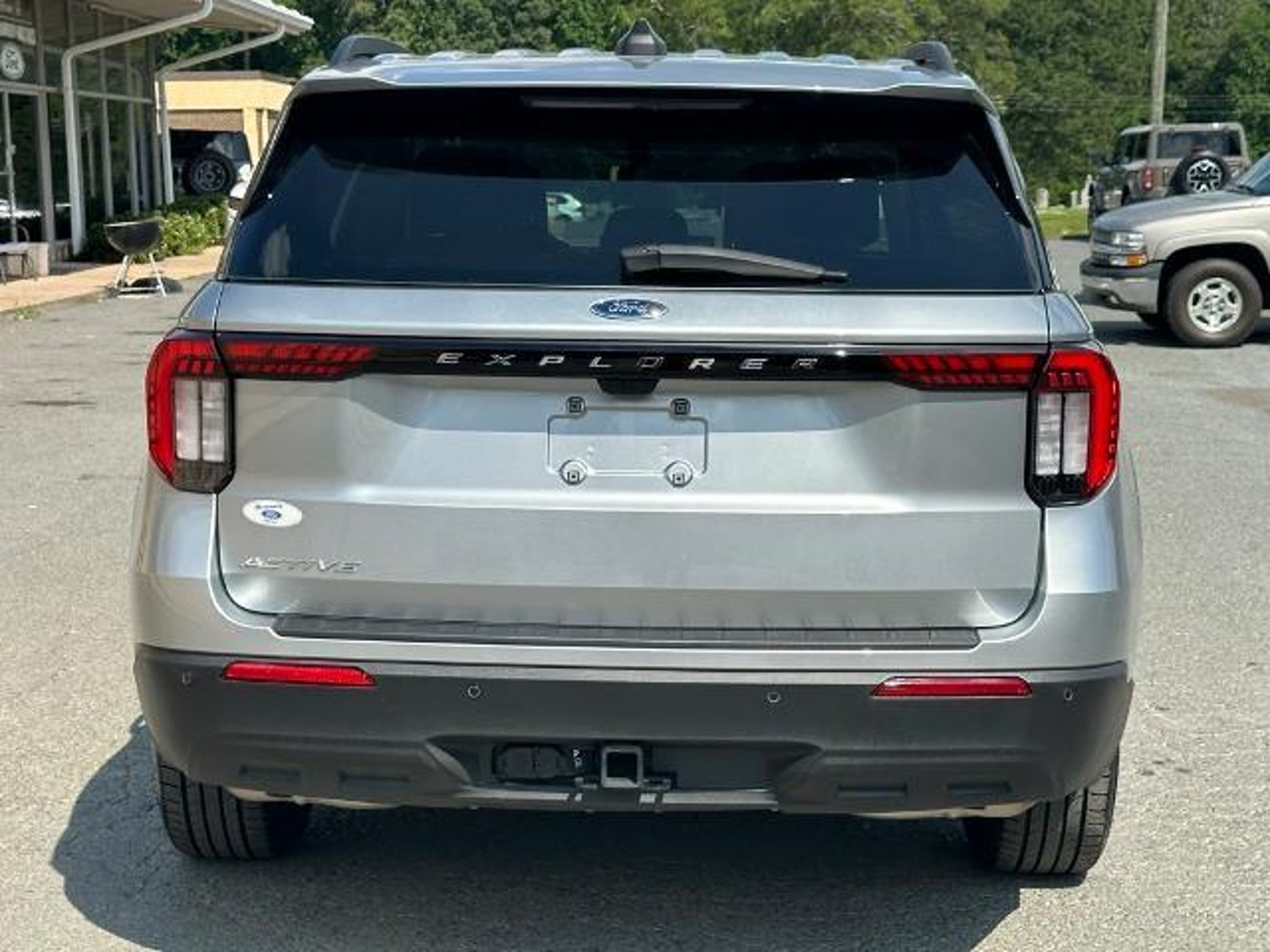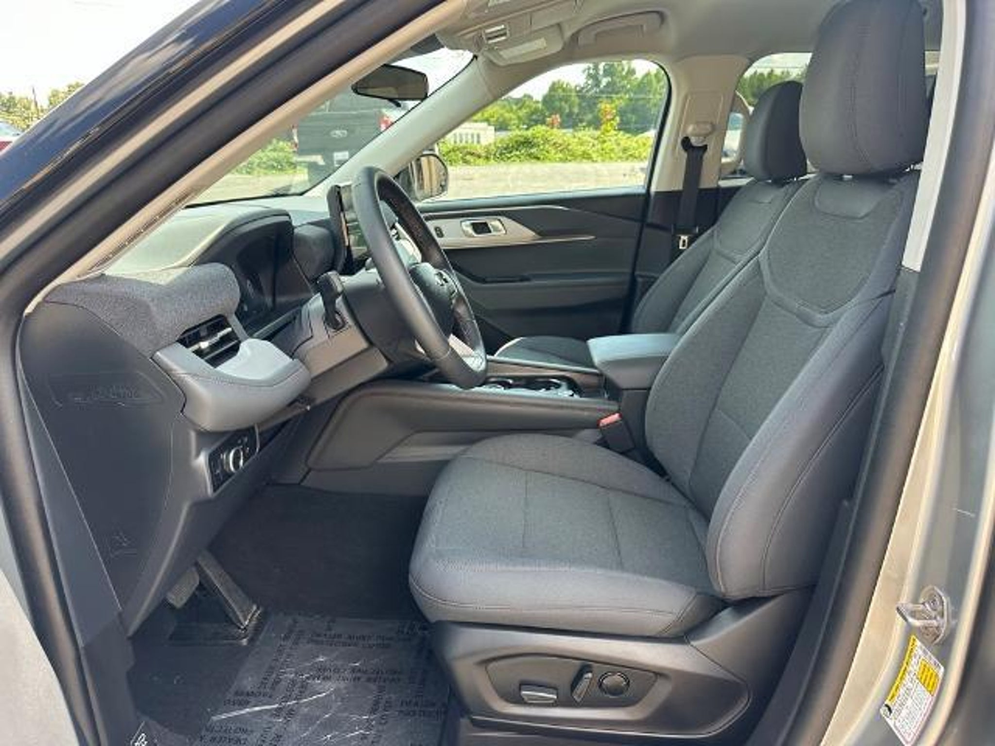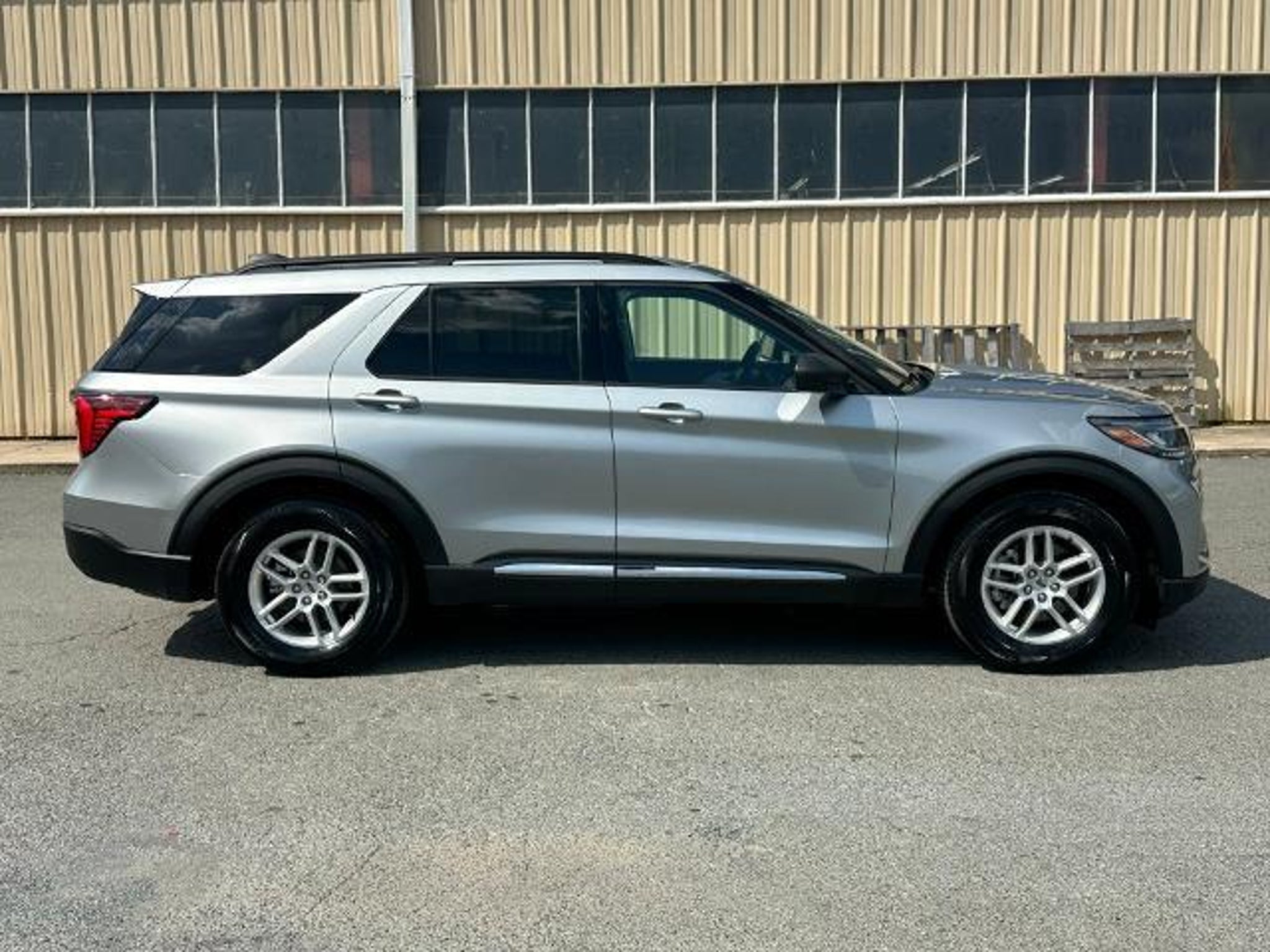 Silver Metallic 2025 Ford Explorer Active RWD CARFAX One-Owner. Equipment Group 200A Standard Package, 3.58 Non-Limited Slip Rear Axle, 3rd row seats: bench, 4-Wheel Disc Brakes, 6 Speakers, ABS brakes, Air Conditioning, Alloy wheels, AM/FM Stereo, Apple CarPlay/Android Auto, Auto High-beam Headlights, Automatic temperature control, Brake assist, Bumpers: body-color, Compass, Delay-off headlights, Driver door bin, Driver vanity mirror, Dual front impact airbags, Dual front side impact airbags, Electronic Stability Control, Emergency communication system: 911 Assist, Exterior Parking Camera Rear, Four wheel independent suspension, Front anti-roll bar, Front Bucket Seats, Front Center Armrest, Front dual zone A/C, Front License Plate Bracket, Front reading lights, Fully automatic headlights, Heated door mirrors, Heated front seats, Illuminated entry, Knee airbag, Leather steering wheel, Low tire pressure warning, Navigation System, Occupant sensing airbag, Outside temperature display, Overhead airbag, Overhead console, Panic alarm, Passenger door bin, Passenger vanity mirror, Power door mirrors, Power driver seat, Power Liftgate, Power passenger seat, Power steering, Power windows, Rear air conditioning, Rear anti-roll bar, Rear reading lights, Rear window defroster, Rear window wiper, Remote keyless entry, Speed control, Speed-sensing steering, Speed-Sensitive Wipers, Split folding rear seat, Spoiler, Steering wheel mounted audio controls, Tachometer, Telescoping steering wheel, Tilt steering wheel, Traction control, Trip computer, Unique Heated Cloth Captain's Chairs, Variably intermittent wipers, and Wheels: 18 Sparkle Silver-Painted Aluminum.