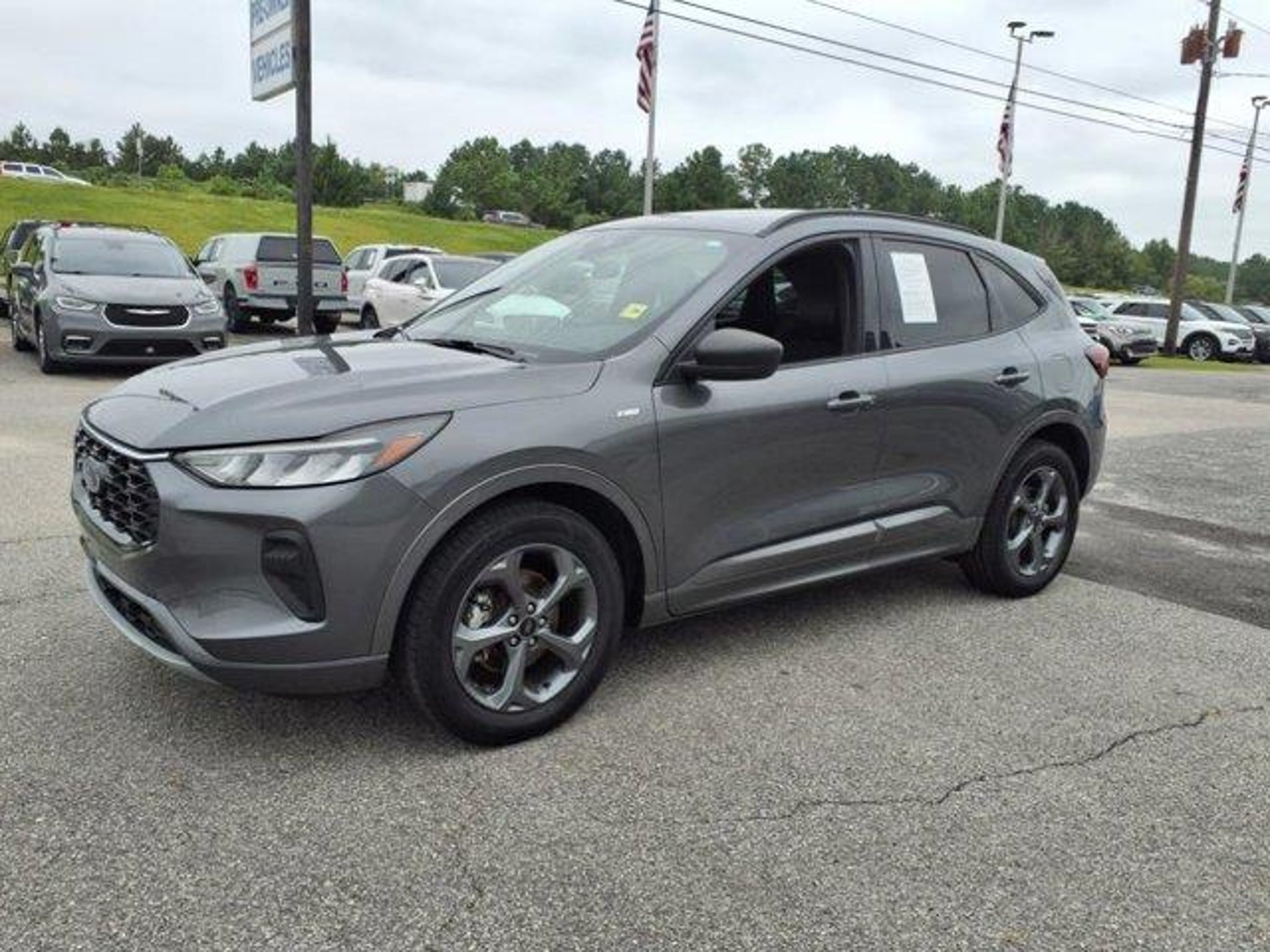 Give us a call at 910-478-4291 to schedule your test drive!Win a steal on this 2023 Ford Escape ST-Line before someone else snatches it. Comfortable but easy-moving, its tried-and-true Automatic transmission and its trusty Intercooled Turbo Premium Unleaded I-3 1.5 L/91 engine have lots of charm for an inexpensive price. It's outfitted with the following options: ENGINE: 1.5L ECOBOOST -inc: auto start-stop technology (STD), Wing Spoiler, Wheels: 18 Rock Metallic Painted Aluminum, Vinyl/Cloth Front Sport Contour Bucket Seats -inc: 8-way power driver seat (includes fore/aft, up/down, power lumbar and power recline), 4-way manual front passenger seat (fore/aft w/manual recline) and red stitching, Valet Function, Trunk/Hatch Auto-Latch, Trip Computer, Transmission: 8-Speed Automatic, Transmission w/Driver Selectable Mode and Oil Cooler, and Tracker System. You've done your research, so stop by Sanders Ford at 1135 Lejeune Blvd, Jacksonville, NC 28540 today to drive home in your new car!