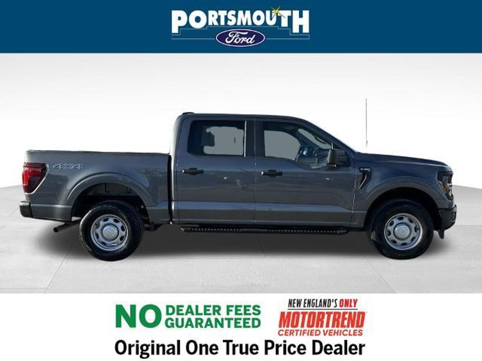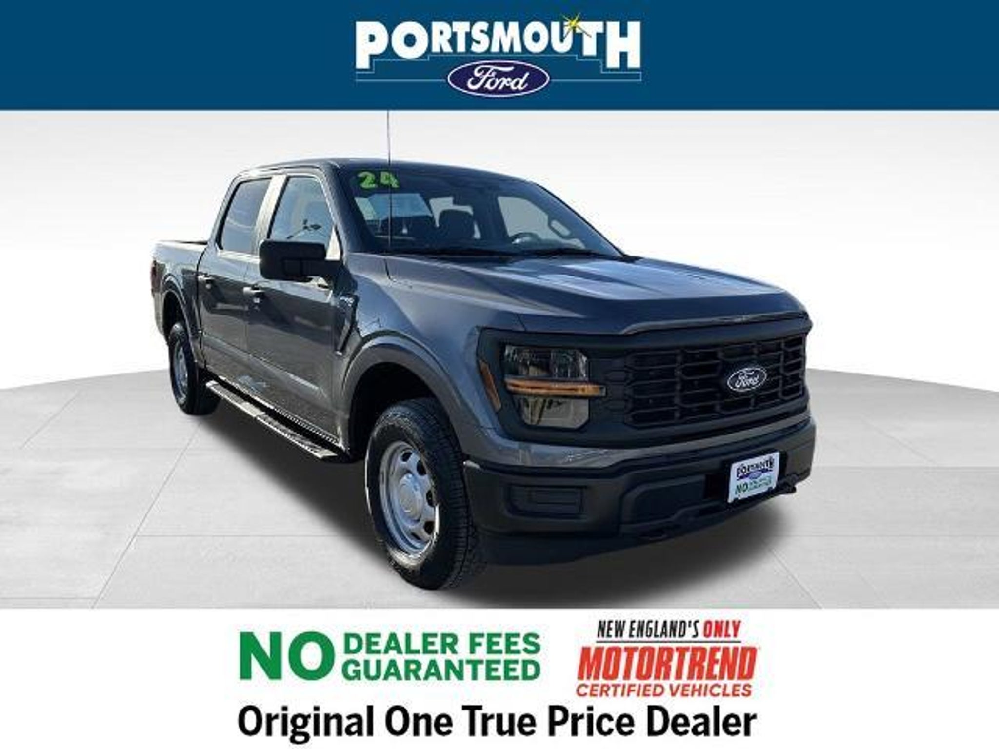 Clean CARFAX. 2024 Ford F-150 XL Carbonized Gray Metallic **NO DEALER FEES**, 4WD. 4D SuperCrew 4WD 2.7L V6 EcoBoost EQUIPMENT GROUP 101A XL SERIES OPTIONAL EQUIPMENT/OTHER .17 SILVER STEEL WHEELS .265/70R 17 BSW ALL-TERRAIN 3.55 ELECTRONIC LOCK RR AXLE 470.00 6650# GVWR PACKAGE FRONT LICENSE PLATE BRACKET NO CHARGE BLACK PLATFORM RUNNING BOARDS 250.00 50 STATE EMISSIONS NO CHARGE EXTENDED RANGE 36GAL FUEL TANK INTEGRATED TRAILER BRAKE CONT 275.00 PRIVACY GLASS W/REAR DEFROSTER 100.00 --PORTSMOUTH FORD ADVANTAGE BENEFITS --6 MONTH/7,500 MILE COMPREHENSIVE WARRANTY --WINDSHIELD REPAIR --COSMETIC WHEEL REPAIR --ROAD HAZARD PROTECTION --ROADSIDE ASSISTANCE --KEY REPLACEMENT --PAINT LESS DENT REPAIR --72 HOUR EXCHANGE POLICY (MAX 300 MILES ) PORTSMOUTH FORD HAS BEEN THE ORIGINAL ONE TRUE PRICE DEALER SINCE 1992, WHILE NEVER CHARGING ANY DEALER, DOCUMENTATION OR PREPARATION FEES GUARANTEED.