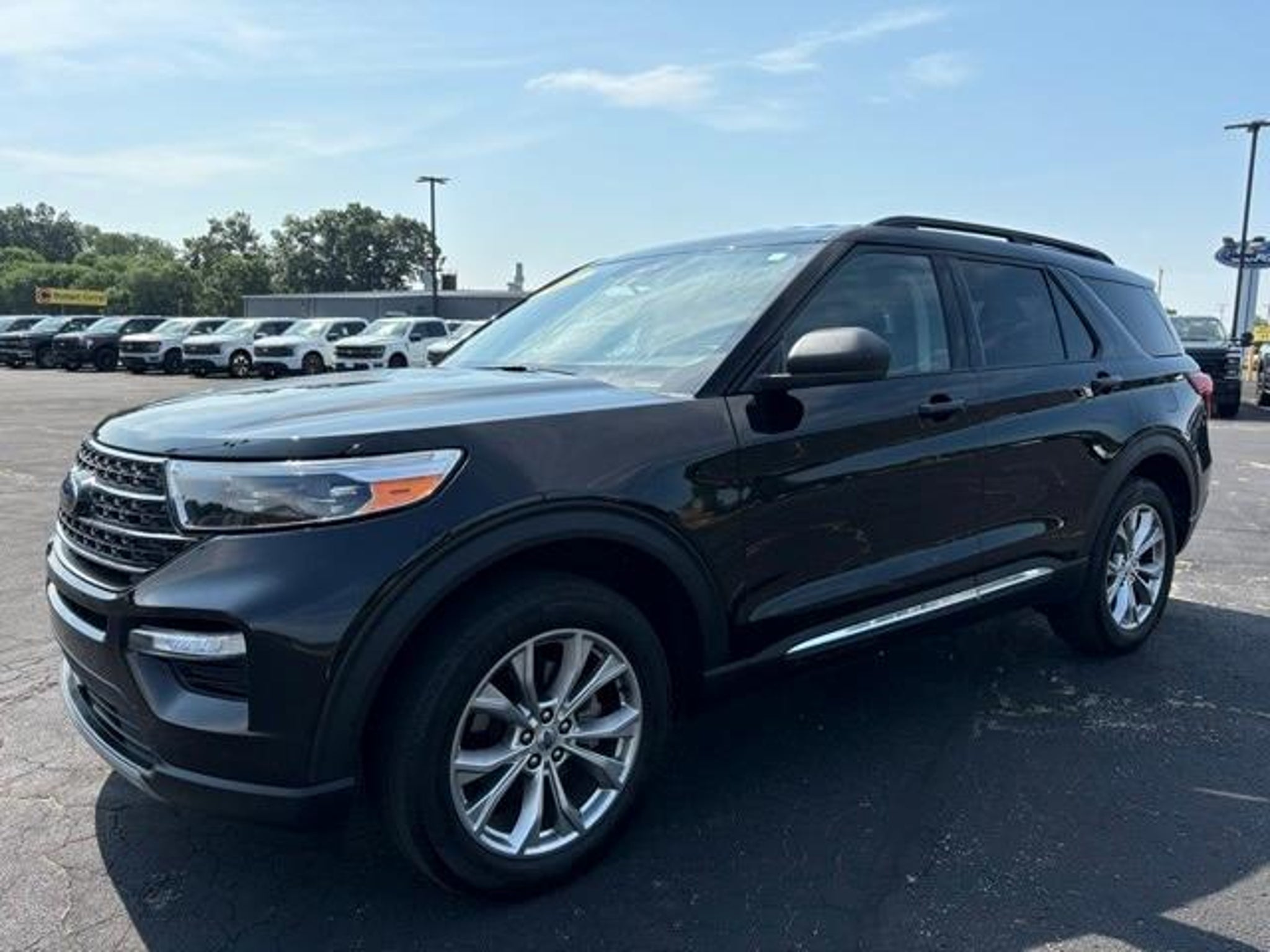 This exceptional 2023 Ford Explorer XLT, finished in bold Agate Black Metallic, delivers capability, comfort, and modern refinement in one well-equipped package. Powered by a spirited 2.3L EcoBoost I-4 engine paired with a 10-Speed Automatic transmission and confident 4WD, it offers strong performance in daily driving and weekend travel. The included Class IV Trailer Tow Package expands your possibilities, making it easy to haul gear, trailers, and recreational equipment. Inside, this Explorer showcases a thoughtfully designed cabin enhanced by Equipment Group 202A. Premium features include Heated Unique Cloth Captains Chairs, a Power driver seat, Heated ActiveX Captains Chairs, and a Heated Steering Wheel paired with a stylish Leather steering wheel, offering year-round comfort. Automatic temperature control, Front dual zone A/C, Rear air conditioning, and the Rear Auxiliary Controls Credit ensure comfort for all three rows. Practical upgrades like Front & Second Row Floor Liners (16B) help maintain cleanliness and durability throughout the interior. Technology and convenience are front and center. Steering wheel mounted audio controls make it easy to operate entertainment and communication features, while the Remote Start System adds convenience during hot or cold weather. The Emergency communication system: SYNC 3 911 Assist provides added peace of mind on every journey. Additional smart features such as the SecuriCode Keyless Entry Keypad, Power Liftgate, and Acoustic-Laminated Front Side Windows enhance convenience, quietness, and security. The Rear window defroster and Heated door mirrors further improve visibility during challenging weather. Handling is supported by Four wheel independent suspension, Speed-sensing steering, ABS brakes, and Electronic Stability Control, offering a smooth, confident, and responsive driving experience. LED Fog Lamps add visibility and style to the exterior design. This Explorer also arrives Ford Gold Certified, meeting rigorous inspection standards and offering valuable warranty protection. The addition of 4 brand new tires ensures improved ride quality, safety, and longevity for its next owner. Well cared for and locally traded, this 2023 Ford Explorer XLT combines its one-owner history, standout condition, and comprehensive list of premium features to deliver an SUV that is ready for anything. Whether navigating daily commutes, family travel, or outdoor adventures, this Explorer offers the versatility, comfort, and reliability modern drivers expect--enhanced by