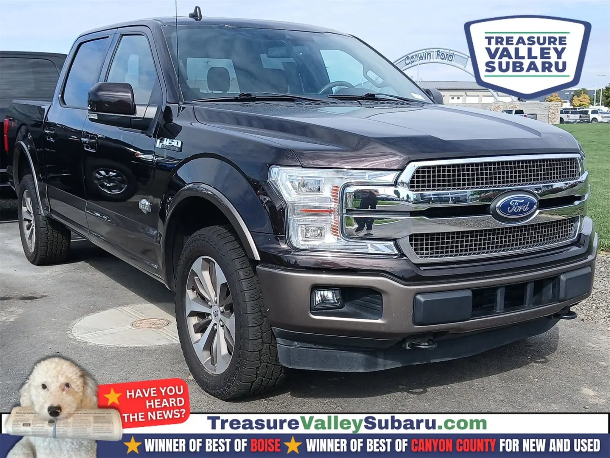Magnetic Clean CARFAX. King Ranch Local Trade In, F-150 King Ranch, 4D SuperCrew, 3.5L V6 EcoBoost, 10-Speed Automatic, 4WD, Magnetic, Java Leather, 20 Machined-Aluminum Wheels, Equipment Group 601A Luxury, Inflatable Rear Safety Belts, Multi-Contour Driver & Passenger Seats, Power-Deployable Running Boards, Tailgate Step w/Tailgate Lift Assist. 4WD Treasure Valley Subaru stocks hundreds of pre-owned vehicles all in one convenient location! Whether you are looking to buy, sell or trade, Treasure Valley Subaru can help!