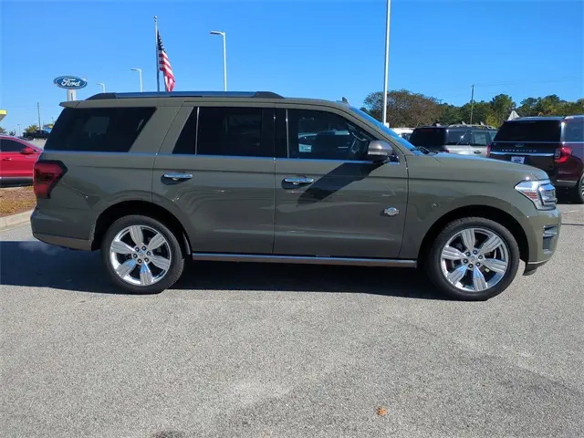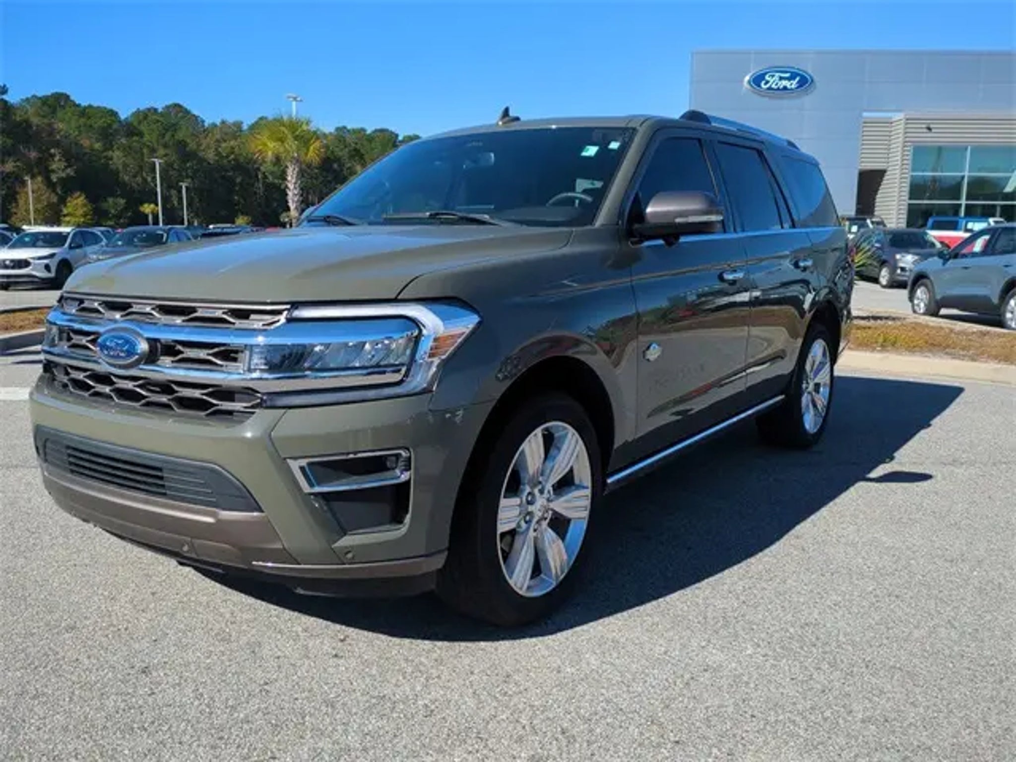 CARFAX One-Owner. Odometer is 22373 miles below market average! 2024 Ford Expedition King Ranch EcoBoost 3.5L V6 GTDi DOHC 24V Twin Turbocharged ** LOCAL TRADE-IN, ** NAVIGATION, ** BLUETOOTH FOR PHONE/ HANDS FREE CELL PHONE, ** PANORAMIC ROOF, ** ONE-OWNER, ** HEATED POWER MIRRORS, ** REAR BACK-UP CAMERA, ** REMOTE KEYLESS ENTRY w/PANIC ALARM, ** MULTIPLE AIRBAGS FOR SAFETY, ** ECOBOOST ENGINE, ** HEATED SEATS, ** TRACTION CONTROL, ** ILUMINATED ENTRY, ** REMAINDER OF FACTORY WARRANTY, 22 6-SPK POLISHED ALUM WHLS, 26mm Engine Radiator, 3.73 Axle Ratio, 360-Degree Camera w/Trailer Reverse Guidance, Equipment Group 400A Standard Package, Heavy-Duty Trailer Tow Package, Integrated Trailer Brake Controller, Navigation system: Connected Navigation, Pro Trailer Backup Assist. INCLUDED FEATURES: Equipment Group 400A Standard Package, Heavy-Duty Trailer Tow Package (26mm Engine Radiator, 3.73 Axle Ratio, 360-Degree Camera w/Trailer Reverse Guidance, Integrated Trailer Brake Controller, and Pro Trailer Backup Assist), Navigation system: Connected Navigation, 22 Speakers, 3rd row seats: split-bench, 4-Wheel Disc Brakes, ABS brakes, Adjustable pedals, Air Conditioning, Alloy wheels, AM/FM radio: SiriusXM with 360L, Auto High-beam Headlights, Auto-dimming door mirrors, Auto-dimming Rear-View mirror, Automatic temperature control, Brake assist, Bumpers: body-color, Compass, Continuous Controlled Damping (CCD), Delay-off headlights, Driver door bin, Driver vanity mirror, Dual front impact airbags, Dual front side impact airbags, Electronic Stability Control, Emergency communication system: SYNC 4 911 Assist, Exterior Parking Camera Rear, Four wheel independent suspension, Front anti-roll bar, Front Bucket Seats, Front Center Armrest, Front dual zone A/C, Front fog lights, Front reading lights, Fully automatic headlights, Garage door transmitter, Genuine wood console insert, Genuine wood dashboard insert, Genuine wood door panel insert, Heated door mirrors, Heated front seats, Heated rear seats, Heated steering wheel, Heated/Vent Prem Del Rio Lthr Fr Captain's Chairs, Illuminated entry, Leather steering wheel, Low tire pressure warning, Memory seat, Occupant sensing airbag, Outside temperature display, Overhead airbag, Overhead console, Panic alarm, Passenger door bin, Passenger vanity mirror, Pedal memory, Power door mirrors, Power driver seat, Power Liftgate, Power moonroof, Power passenger seat, Power steering, Power windows, Radio data system, Radio: B&O Unleashed Sound System by Bang & Olufsen, Rain sensing wipers, Rear air conditioning, Rear anti-roll bar, Rear reading lights, Rear window defroster, Rear window wiper, Reclining 3rd row seat, Remote keyless entry, Security system, SiriusXM w/360L, Speed control, Speed-sensing steering, Speed-Sensitive Wipers, Split folding rear seat, Spoiler, Steering wheel memory, Steering wheel mounted audio controls, SYNC 4 w/Enhanced Voice Recognition, Tachometer, Telescoping steering wheel, Tilt steering wheel, Traction control, Trip computer, Turn signal indicator mirrors, Variably intermittent wipers, Ventilated front seats, Voltmeter, and Wheels: 22 6-Spoke Polished Aluminum *Please check with the dealer to confirm vehicle availability.*Total Savings/Sales Price includes $1,000 Military rebate and all available Rebates/Offers. Some rebates may require Ford Motor Credit Financing. Low APR / Special APR may not combine with some or all rebates. Not all buyers will qualify. *Please check with the dealer to confirm vehicle availability.*Total Savings/Sales Price includes $1,000 Military rebate and all available Rebates/Offers. Some rebates may require Ford Motor Credit Financing. Low APR / Special APR may not combine with some or all rebates. Not all buyers will qualify.
