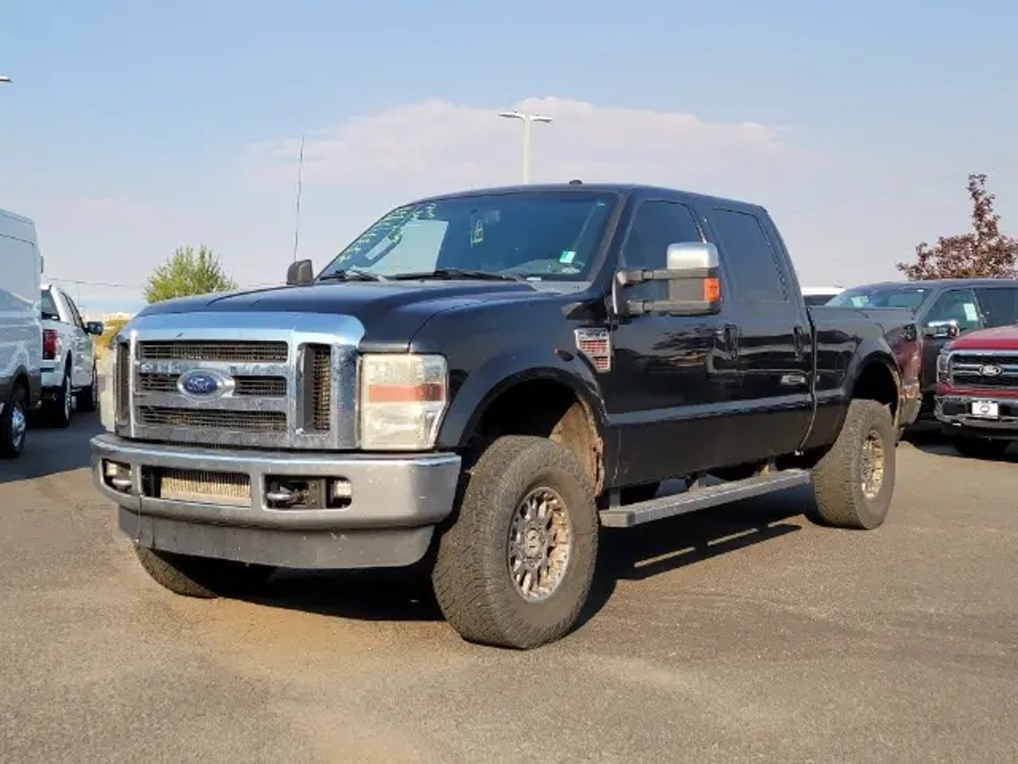 Power Stroke 6.4L V8 DI 32V OHV Twin Turbo Diesel, 4WD, 18 Premium Forged Aluminum Wheels, 3.73 Axle Ratio, 4 Speakers, 4-Wheel Disc Brakes, ABS brakes, Air Conditioning, Alloy wheels, AM/FM radio: SIRIUS, Auto-dimming Rear-View mirror, Automatic temperature control, Bumpers: chrome, CD player, Compass, Console, Delay-off headlights, Driver door bin, Driver vanity mirror, Dual front impact airbags, Front anti-roll bar, Front Bucket Seats, Front Center Armrest, Front dual zone A/C, Front fog lights, Front reading lights, Fully automatic headlights, Heated door mirrors, Heated front seats, Illuminated entry, Leather Seating Surfaces Luxury Capt's Chairs w/Heat, Leather steering wheel, Low tire pressure warning, Outside temperature display, Overhead console, Panic alarm, Passenger door bin, Passenger vanity mirror, Power door mirrors, Power driver seat, Power passenger seat, Power steering, Power windows, Premium Electronic AM/FM Stereo w/Single CD, Rear Parking Sensors, Rear reading lights, Rear seat center armrest, Rear step bumper, Remote keyless entry, Satellite Radio, Security system, Speed control, Split folding rear seat, Steering wheel mounted audio controls, Tachometer, Tilt steering wheel, Trip computer, Turn signal indicator mirrors, Variably intermittent wipers. Black 2010 Ford F-350SD Lariat 4WD Power Stroke 6.4L V8 DI 32V OHV Twin Turbo Diesel TorqShift 5-Speed Automatic with Overdrive Awards: * 2010 KBB.com Brand Image Awards