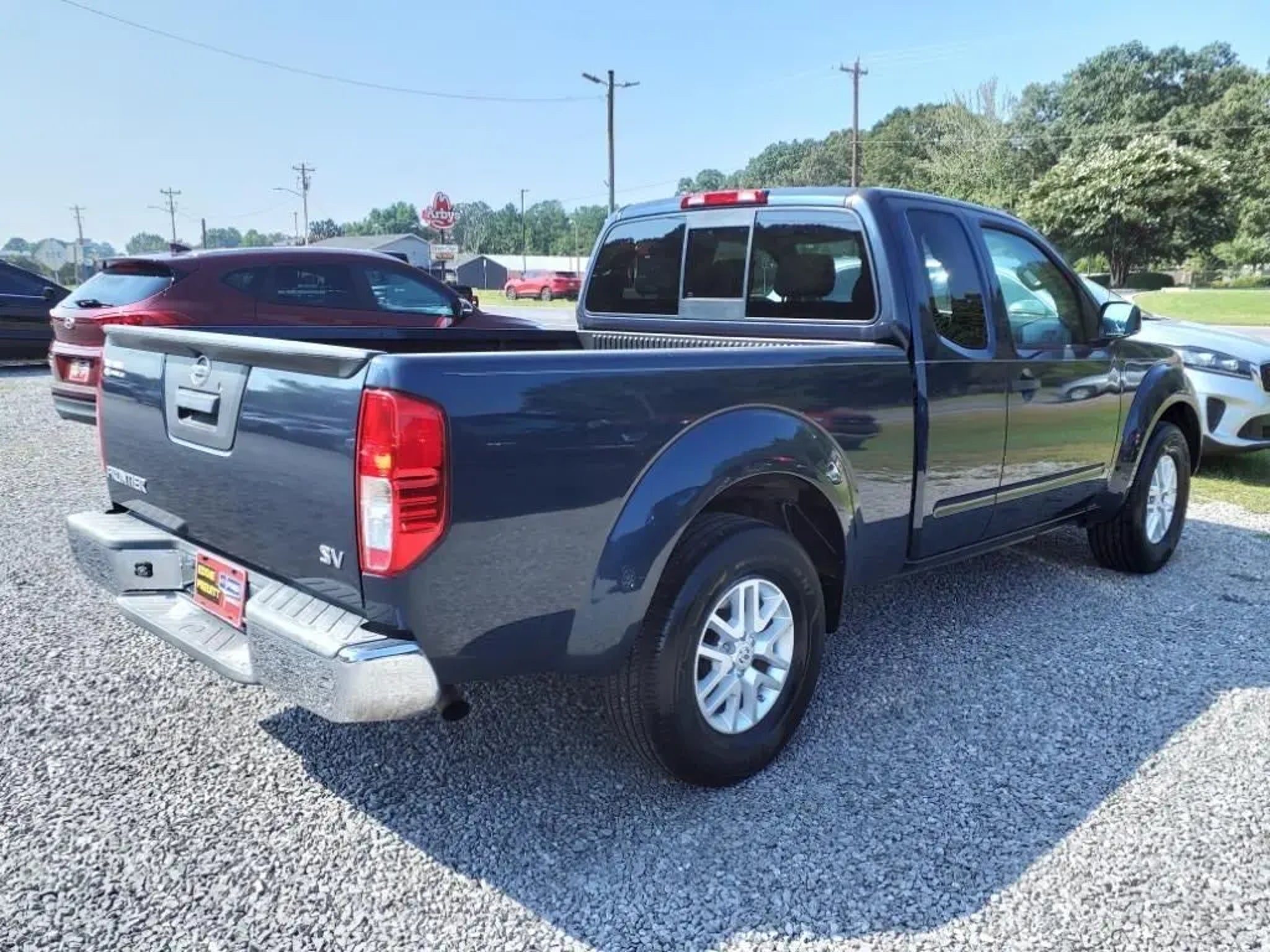 This 2018 Nissan Frontier SV 5-Speed Automatic with Overdrive is equipped with 16 Alloy Wheels, 3.916 Axle Ratio, 4 Speakers, 4-Wheel Disc Brakes, ABS brakes, Air Conditioning, Alloy wheels, AM/FM radio: SiriusXM, Anti-whiplash front head restraints, Bumpers: body-color, CD player, Cloth Seat Trim, Driver door bin, Driver vanity mirror, Dual front impact airbags, Dual front side impact airbags, Electronic Stability Control, Exterior Parking Camera Rear, Front anti-roll bar, Front Bucket Seats, Front Center Armrest, Front reading lights, Front wheel independent suspension, Illuminated entry, Low tire pressure warning, Occupant sensing airbag, Overhead airbag, Overhead console, Panic alarm, Passenger door bin, Passenger vanity mirror, Power door mirrors, Power steering, Power windows, Radio data system, Radio: AM/FM/CD w/Auxiliary Input, Rear step bumper, Remote keyless entry, Speed control, Speed-sensing steering, Split folding rear seat, Steering wheel mounted audio controls, Tachometer, Tilt steering wheel, Traction control, Variably intermittent wipers, and Voltmeter.
