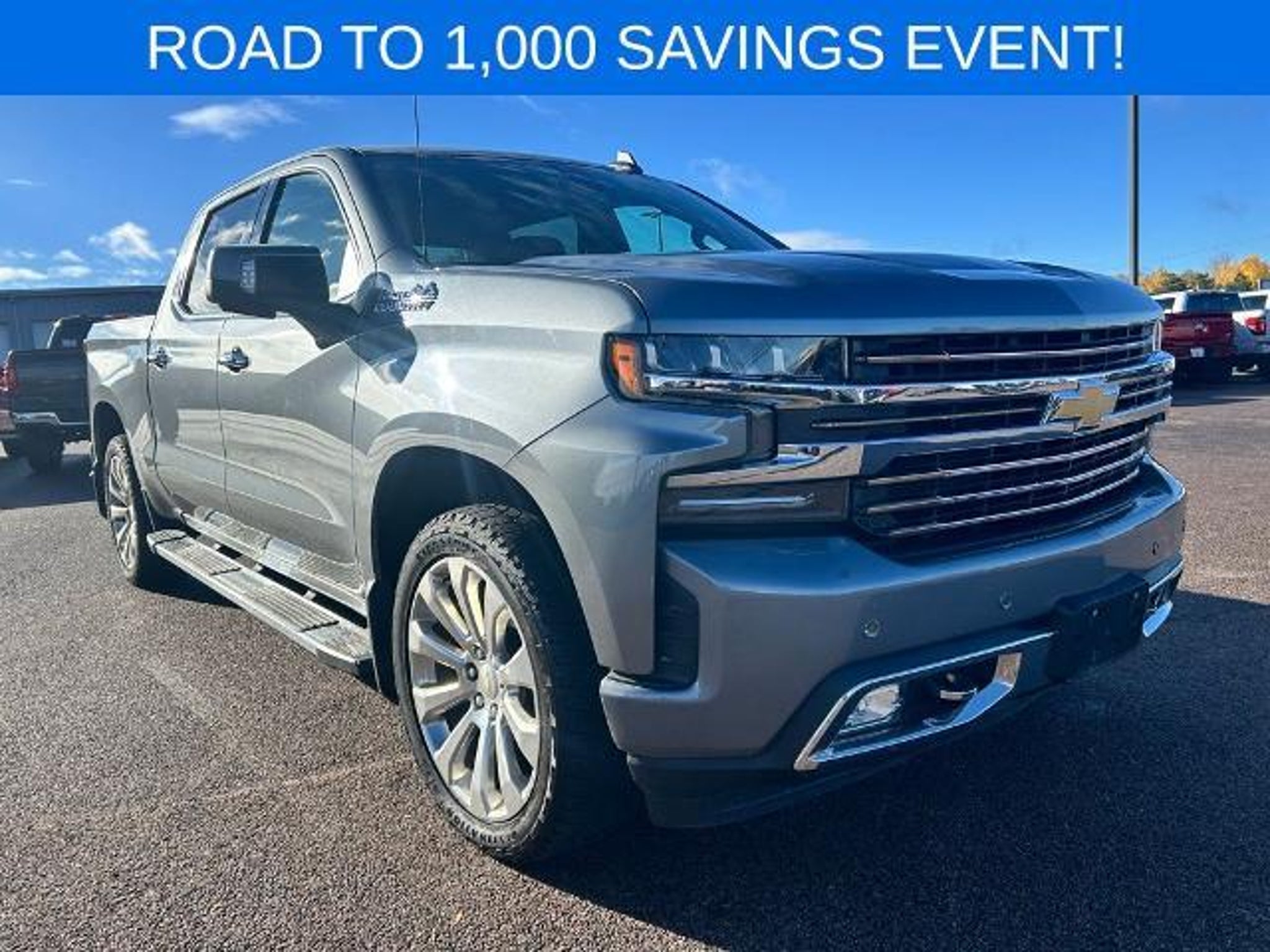 ONE OWNER BELOW BOOK VALUE 4X4 BLUETOOTH HANDS FREE PHONE BACK-UP CAMERA 10-Speed Automatic 4WD Jet Black Leather. CARFAX One-Owner. Clean CARFAX. Priced below KBB Fair Purchase Price! 2020 Chevrolet Silverado 1500 High Country Satin Steel Metallic 4WD 10-Speed Automatic EcoTec3 5.3L V8 This vehicle features High Country Deluxe (All-Weather Floor Liner (LPO) and Power Sunroof) Preferred Equipment Group 3LZ (10-Way Power Driver Seat w/Lumbar 10-Way Power Passenger Seat Adjuster w/Lumbar 12-Volt Rear Auxiliary Power Outlet 120-Volt Bed Mounted Power Outlet 120-Volt Instrument Panel Power Outlet 2nd Row Heated Outboard Seats 4G LTE Wi-Fi Hot Spot Capable 8 Driver Information Center Advanced Trailering System Auto-Dimming Inside Rear-View Mirror Auxiliary External Transmission Oil Cooler Bluetooth® For Phone Chevrolet Connected Access Capable Chevytec Spray-On Black Bedliner Chrome Assist Steps Chrome Grille Chrome Recovery Hooks Color-Keyed Carpeting Floor Covering Compass Deep-Tinted Glass Driver Memory Dual Exhaust w/Polished Outlets Electric Rear-Window Defogger Electrical Lock Control Steering Column Floor Mounted Center Console Front Carpeted Floor Mats Front LED Fog Lamps HD Radio HD Rear Vision Camera Heated Driver & Front Outboard Passenger Seats Heated Steering Wheel Heavy-Duty Rear Locking Differential Hitch Guidance Hitch Guidance w/Hitch View Integrated Trailer Brake Controller Keyless Open & Start Lane Change Alert w/Side Blind Zone Alert Leather Wrapped Steering Wheel LED Cargo Area Lighting Manual Tilt/Telescoping Steering Column OnStar & Chevrolet Connected Services Capable Outside Heated Power-Adjustable Mirrors Painted Mirror Caps Power Door Locks Power Front Passenger Windows w/Express Up/Down Power Front Windows w/Driver Express Up/Down Power Rear Windows w/Express Down Power Sliding Rear Window w/Rear Defogger Rear Carpeted Floor Mats Rear Cross Traffic Alert Rear Dual USB Charging-Only Ports Rear Wheelhouse Liners Remote Vehicle Starter System SiriusXM w/360L Steering Wheel Audio Controls Steering Wheel Mounted Electronic Cruise Control Theft Deterrent System (Unauthorized Entry) Ultrasonic Front & Rear Park Assist Universal Home Remote Ventilated Driver & Front Passenger Seats and Wireless Charging) Safety Package II (Adaptive Cruise Control - Camera Automatic Emergency Braking Following Distance Indicator Forward Collision Alert Front Pedestrian Braking IntelliBeam Automatic High Beam On/Off Lane Keep Assist w/Lane Departure Warning and Safety Alert Seat) Trailering Package Up-Level Rear Seat w/Storage Package 10-Speed Automatic 4WD Jet Black Leather 170 Amps Alternator 3.23 Rear Axle Ratio 4-Wheel Disc Brakes 7 Speakers ABS brakes Air Conditioning Alloy wheels AM/FM radio: SiriusXM with 360L Apple CarPlay/Android Auto Auto-dimming door mirrors Auto-dimming Rear-View mirror Automatic temperature control Brake assist Bumpers: body-color Delay-off headlights Driver door bin Driver vanity mirror Dual front impact airbags Dual front side impact airbags Electronic Stability Control Front anti-roll bar Front Bucket Seats Front Center Armrest Front dual zone A/C Front fog lights Front License Plate Kit Front reading lights Front wheel independent suspension Fully automatic headlights Garage door transmitter Heated door mirrors Heated front seats Heated rear seats Heated steering wheel Heavy Duty Suspension Illuminated entry Low tire pressure warning Memory seat Molded Black Splash Guards (LPO) Navigation System Occupant sensing airbag Outside temperature display Overhead airbag Overhead console Panic alarm Passenger door bin Passenger vanity mirror Perforated Leather-Appointed Seat Trim Power door mirrors Power driver seat Power passenger seat Power steering Power windows Premium audio system: Chevrolet Infotainment 3 Premium Radio data system Radio: Chevrolet In>