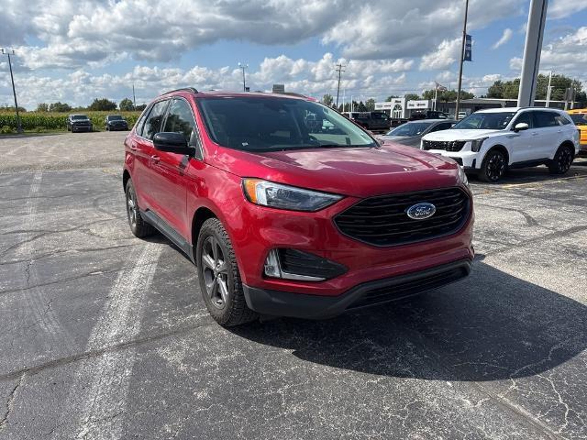 Edge SEL EcoBoost 2.0L I4 GTDi DOHC Turbocharged VCT AWD Rapid Red Metallic Tinted Clearcoat *ALL WHEEL DRIVE* *ANDROID AUTO* *APPEARANCE PACKAGE* *APPLE CARPLAY* *BLIND SPOT MONITORING SYSTEM* *FULLY SERVICED* *HANDSFREE BLUETOOTH* *HEATED SEATS* *HEATED STEERING WHEEL* *JUST ARRIVED* *LANE DEPARTURE WARNING* *OIL CHANGES for LIFE* *PREMIUM WHEELS* *REAR POWER LIFTGATE* *REMOTE START* *SUPER BUY* *VERY CLEAN* 110V/150W AC Power Outlet ActiveX Seating Material Heated Bucket Seats (513) Black Roof-Rack Side Rails Convenience Package Dark Carbonized Gray Lower Front Bumper Door Inserts w/Navy Pier Accent Stitching Equipment Group 201A Fog Lamps w/Chrome Bezel Perimeter Alarm Pillar Black Grille Bars Pillar Black Mirror Caps Power Liftgate Remote Start System SecuriCode Keyless Entry Keypad Sport Appearance Package Universal Garage Door Opener (UGDO) Wheels: 18 Carbonized Gray-Painted Aluminum Wireless Charging Pad. 2022 Ford Edge SEL Rapid Red Metallic Tinted Clearcoat YOUR BEST PRICE on ANY NEW FORD is at Alma Ford. Get the MOST MONEY for your TRADE and BEST PRICE GUARANTEE on ANY NEW FORD! Alma Ford is your #1 choice in Michigan to get the BEST PRICE on any NEW Ford and HOME of the OIL Changes for LIFE*. The Alma Ford team is ready to provide you with a world-class experience ensuring that you find the perfect vehicle that fits all your needs. Every vehicle has been through a 172 point safety inspection completed by a certified technicians and fully detailed. We sell many makes and models Pre-Owned Ford Vehicles 2025-2024-2023-2022-2021-2020-2019-2018-2017-2016-2015-2014-2013-2012-2011-2010 Ford Bronco Bronco Sport Edge Escapes Expedition Explorer Fusions Focus Flex F-150 Series F-250 F-350 Super Duty Diesel Trucks Maverick Mustang MACH-E Mustang Ranger Transit and more For sale. Take advantage of our VIP experience by calling to schedule a test drive. Read our customer reviews at -testimonials or view our entire selection of new and preowned vehicles at or stop by today located at 2051 W Monroe Alma MI 48801. 2022 Ford Edge SEL AWD 8-Speed Automatic EcoBoost 2.0L I4 GTDi DOHC Turbocharged VCT Alma Ford is proud to service customers saving you time & money on any New or Pre-owned vehicle! See dealer for complete details dealer is not responsible for pricing errors all prices plus tax title plate doc fees and includes manufacturer rebates. Serving Alma and all of our surrounding cities like Carson City Ithaca Mount Pleasant Saint Johns Saginaw Midland Big Rapids Lakeview Edmore Breckenridge Ashley Sheperd Clare Greenville Hemlock Grand Rapids Lansing Kalamazoo Muskegon Grand Haven Holland Wyoming and anywhere in the great state of Michigan. *Whenever you purchase a vehicle from us new or used that is less than 10 years old and has less than 100000 miles and you automatically get something no other dealer in Mid-Michigan can provide; Oil Changes For Life! Buy from Alma Ford in Alma MI and never pay for an oil change again! Some of our used vehicles may be subject to unrepaired safety recalls. Check for a vehicles unrepaired recalls by VIN at 21/28 City/Highway MPG